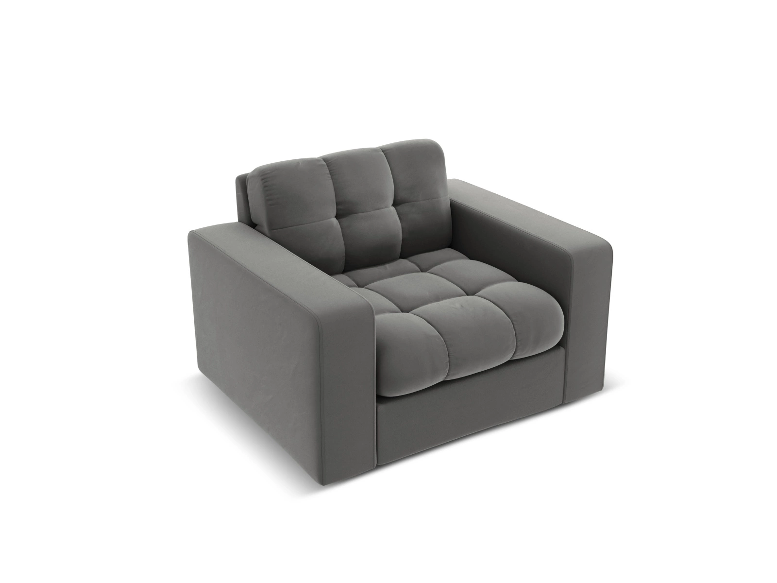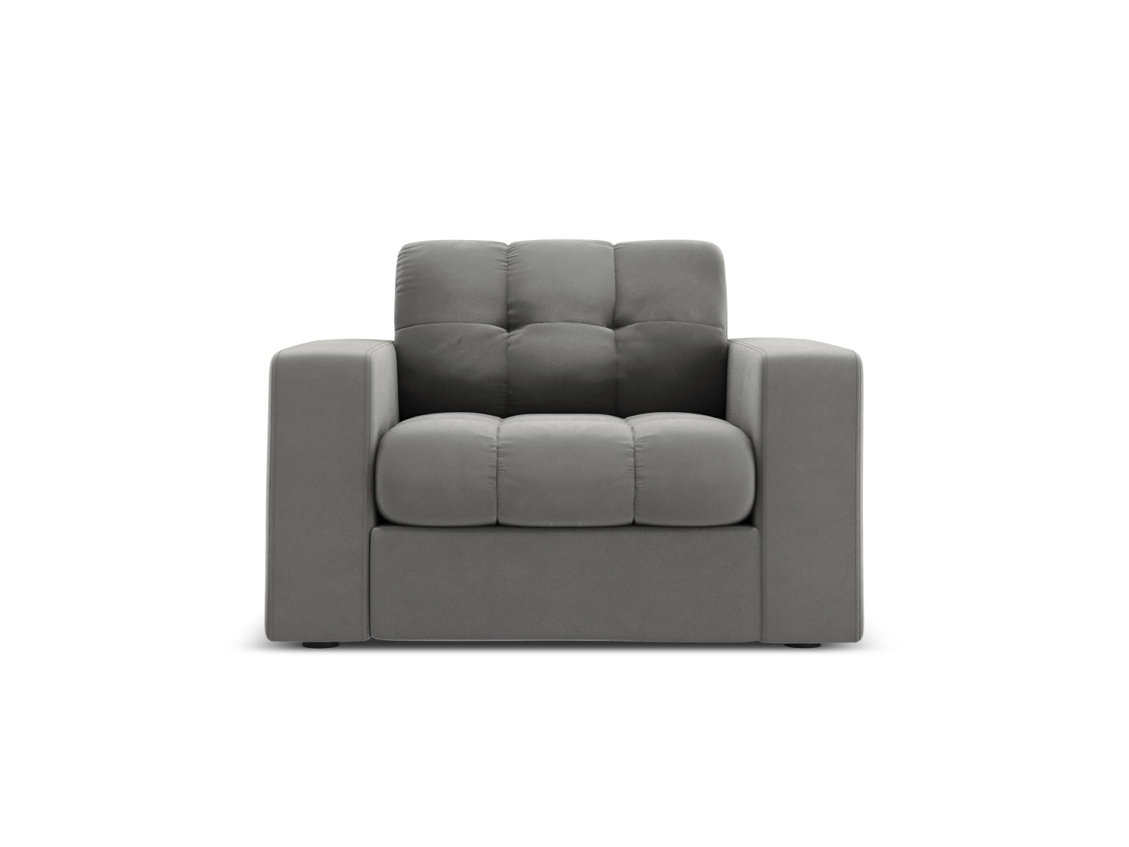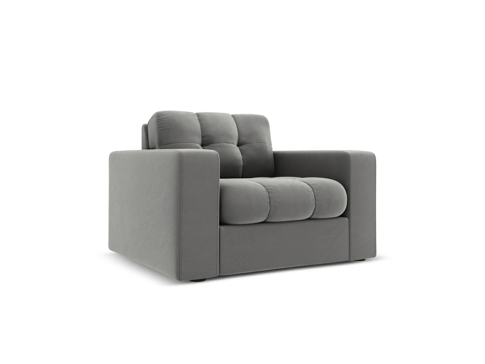 Szary fotel z welwetowym obiciem