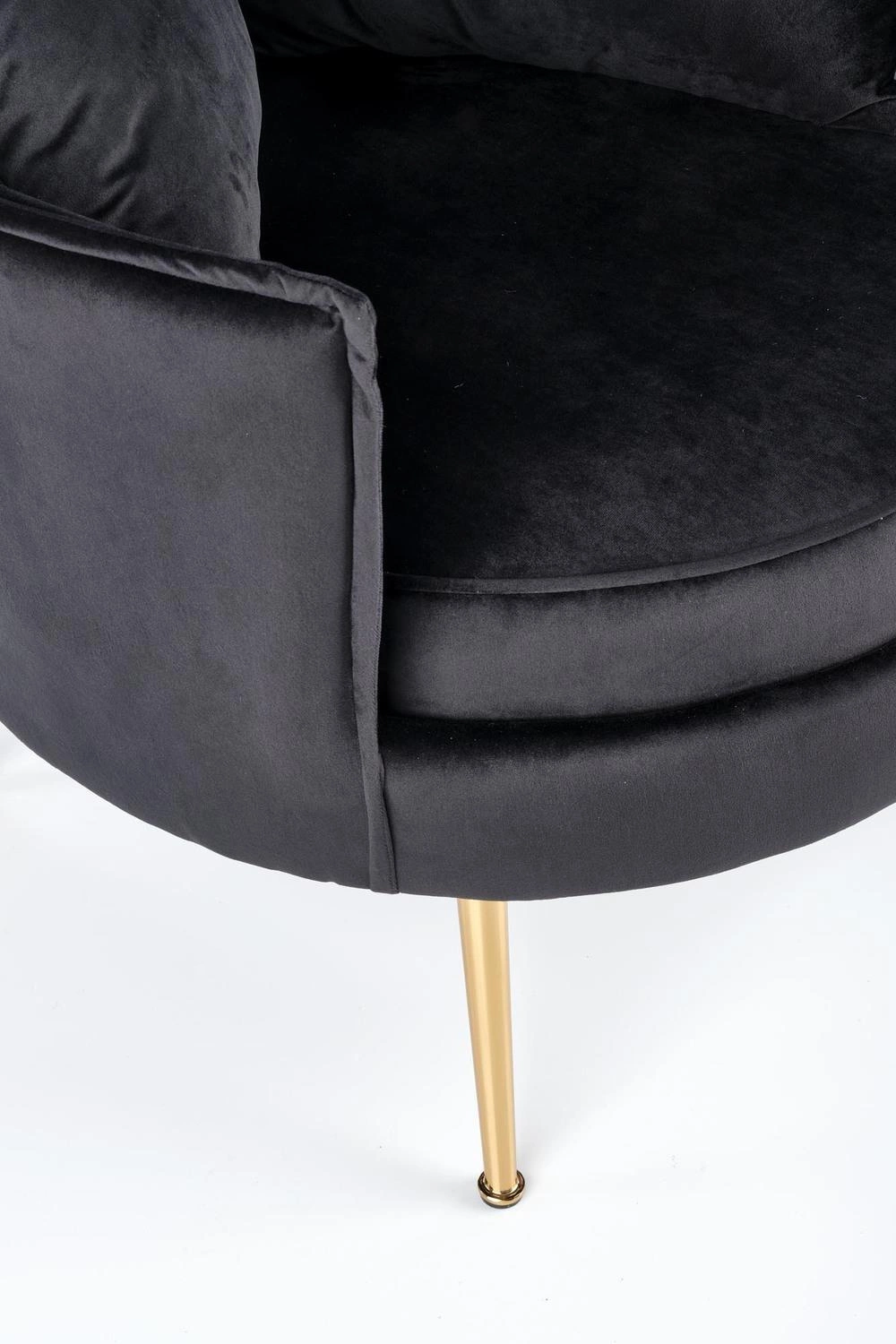 - Metalowa podstawa w kolorze złotym nadaje fotelowi wyrafinowanego uroku.