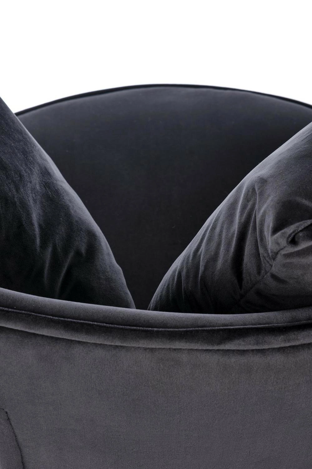 - Siedzisko z pięknej welwetowej tkaniny jest miękkie i dodaje fotelowi blasku.