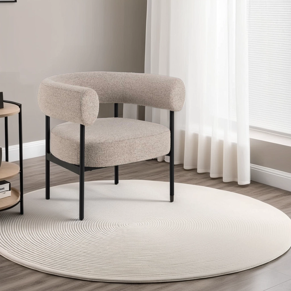 Przedstawiamy niezwykle komfortowy fotel wypoczynkowy, który doskonale łączy w sobie wygodę i styl. Jego solidne proporcje, zaokrąglone oparcie i wyściółka siedziska w pięknym beżowym strukturalnym obiciu sprawiają, że to krzesło wygląda niezwykle przytulnie i elegancko.