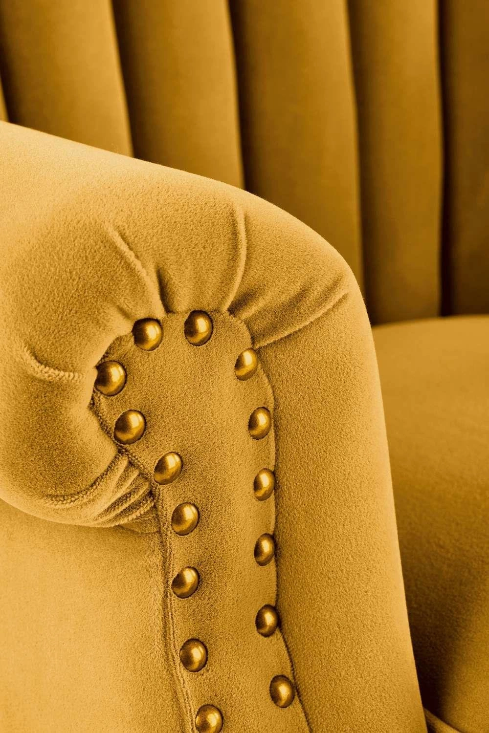 Komfort łączy się ze stylem dzięki żółtemu fotelowi Vader firmy Intesi Zrelaksuj się w stylu i komforcie z fotelem Vader firmy Intesi. Fotel o klasycznym, nowoczesnym designie, wykonany z drewna i tapicerowany aksamitną tkaniną welwetową, jest idealnym akcentem do każdego pomieszczenia. Przedstawiamy Vader, najlepsze połączenie klasycznego i nowoczesnego designu w jednym fotelu! Luksusowy mebel opiera się na czarnych, drewnianych nogach, a jego miękka aksamitna tkanina sprawi, że nigdy nie będziesz chciał z niego zejść. Niezależnie od tego, czy szukasz wyjątkowego dodatku do swojego salonu, czy wygodnego miejsca do relaksu w biurze, Vader z pewnością będzie idealnie pasować. Dzięki wysokości 87 centymetrów i wysokości siedziska wynoszącej 45 cm, dodaje eleganckiego akcentu, którego nie da się zignorować. Wymiary 87x73x70 zapewniają wystarczające wsparcie i komfort na każdą okazję. Dodatkowo, fotel jest zaskakująco lekki, więc zmiana aranżacji pokoju właśnie stała się łatwiejsza! Wybierz Vader i wprowadź ponadczasowy styl do swojego domu już dziś. O tym warto pamiętać! Ciesz się maksymalnym komfortem dzięki luksusowej aksamitnej tapicerce i ergonomicznej konstrukcji Wzbogać wystrój swojego pokoju dzięki eleganckim, nowoczesnym liniom i klasycznej drewnianej ramie Umieść w dowolnym miejscu w pokoju dzięki lekkiej konstrukcji i kompaktowym rozmiarom Ciesz się trwałością dzięki solidnej konstrukcji i wysokiej jakości materiałom