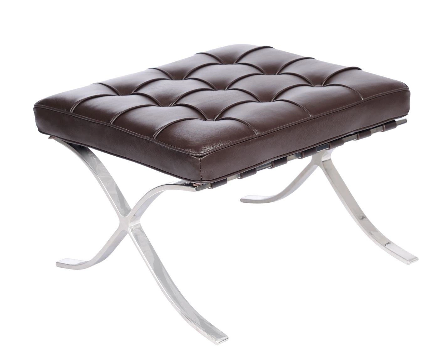 Fotel BA1 jestinspirowany projektem fotela Barcelona. Barcelona to zaprojektowany w 1929 roku fotel, który powstał na zamówienie i stanął w niemieckim pawilonie na wystawie w Barcelonie.,Charakterystycznie powyginana w kształt litery "X" chromowana podstawa oraz pikowana w kwadraty naturalna skóra to najbardziej charakterystyczne cechy tego fotela. Uzupełnieniem tego fotela jest Barcelona Ottoman i Barcelona,stolik.,Fotel wykonany całkowicie ze skóry naturalnej.. Dopełnieniem fotela jest podnóżek, który komponuje się doskonale z fotelem.