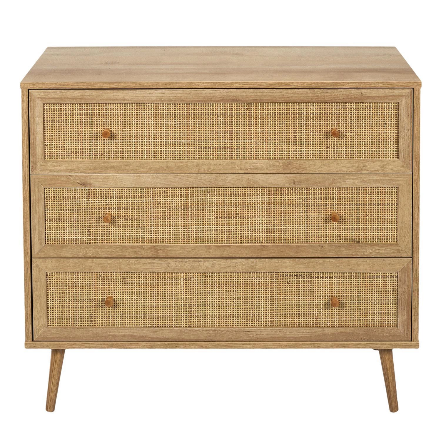 ? praktyczne trzy szuflady wzbogacona plecionym rattanem na froncie