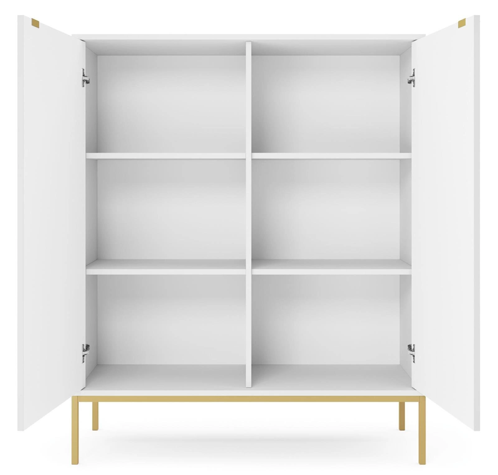 Oszałamiająca komoda z ryflowanymi frontami i stylowymi złotymi uchwytami wniesie wyrafinowanie i urok do każdej przestrzeni. Jej dwie szafki i sześć półek oferują dużą pojemność do przechowywania wszystkich rzeczy - od odzieży i biżuterii po sztućce, pamiątki i elektronikę. Co więcej, metalowe nóżki zapewniają długotrwałą stabilność, a także dodatkową wysokość, dzięki czemu można bez wysiłku sięgać w dół lub sprzątać pod nim bez trudności.