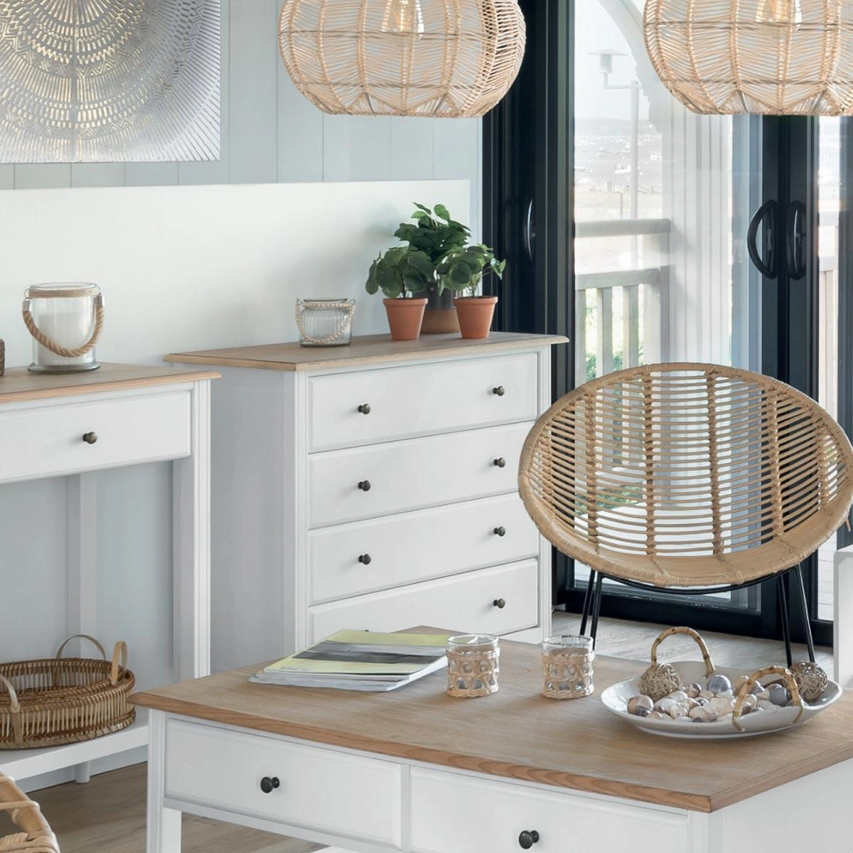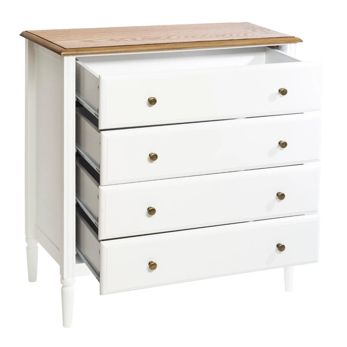 Komoda Solen zapewni Ci idealną równowagę między stylem a funkcjonalnością. Elegancki mebel wykonany jest z najwyższej jakości materiałów, w tym z płyty MDF na ramie i okleiny jesionowej, uzupełnionej sosnowymi nogami. Szuflady wykonane są z płyty wiórowej. Dzięki czterem szufladom, każda o wymiarach 63 D x 28,5 W x 18 H cm, ta komoda oferuje mnóstwo miejsca do przechowywania odzieży i innych przedmiotów. Szuflady z miękkim zamknięciem są odporne na kurz i łatwe do otwierania i zamykania. Ta stylowa komoda jest idealna do każdej sypialni lub salonu, dodając odrobinę nowoczesnego stylu do wystroju domu. Komoda jest łatwa w montażu, a cały niezbędny sprzęt znajduje się w zestawie. Nadaj swojemu domowi poczucie stylu i praktyczności dzięki komodzie SOLEN. Nowoczesny design połączony z białym odcieniem, nadając mu luksusowy wygląd, który uzupełni inne elementy w przestrzeni.