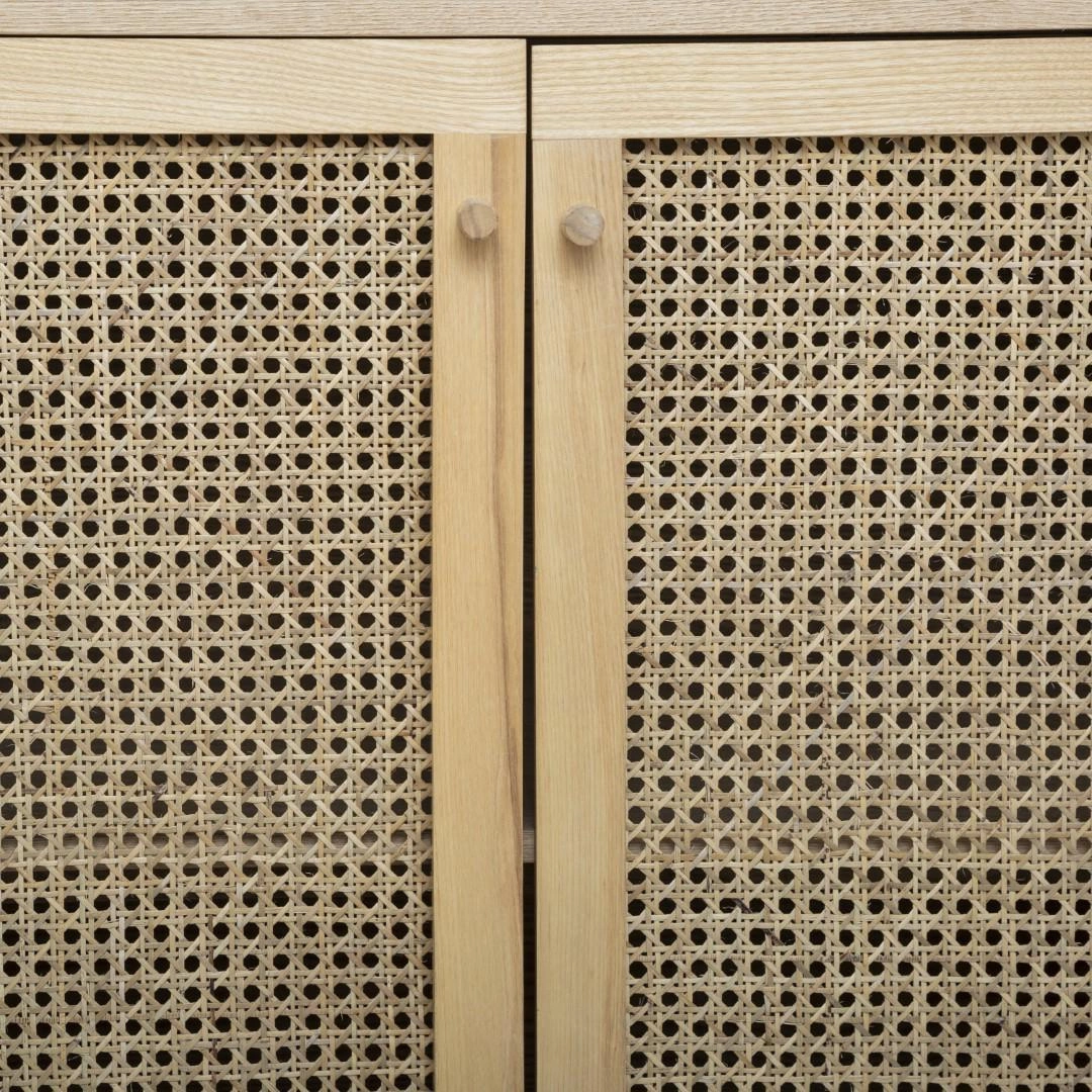 Komoda Canne z rattanowymi frontami na jesionowych, drewnianych nogach odmieni wnętrze. Komoda o jasnym, przyjemnym kolorze drewna sprawdzi się nie tylko we wnętrzu boho. Komoda będzie ciekawie korespondować z dodatkami w stylu Japandi. Rattanowe fronty dodają meblowi lekkości.