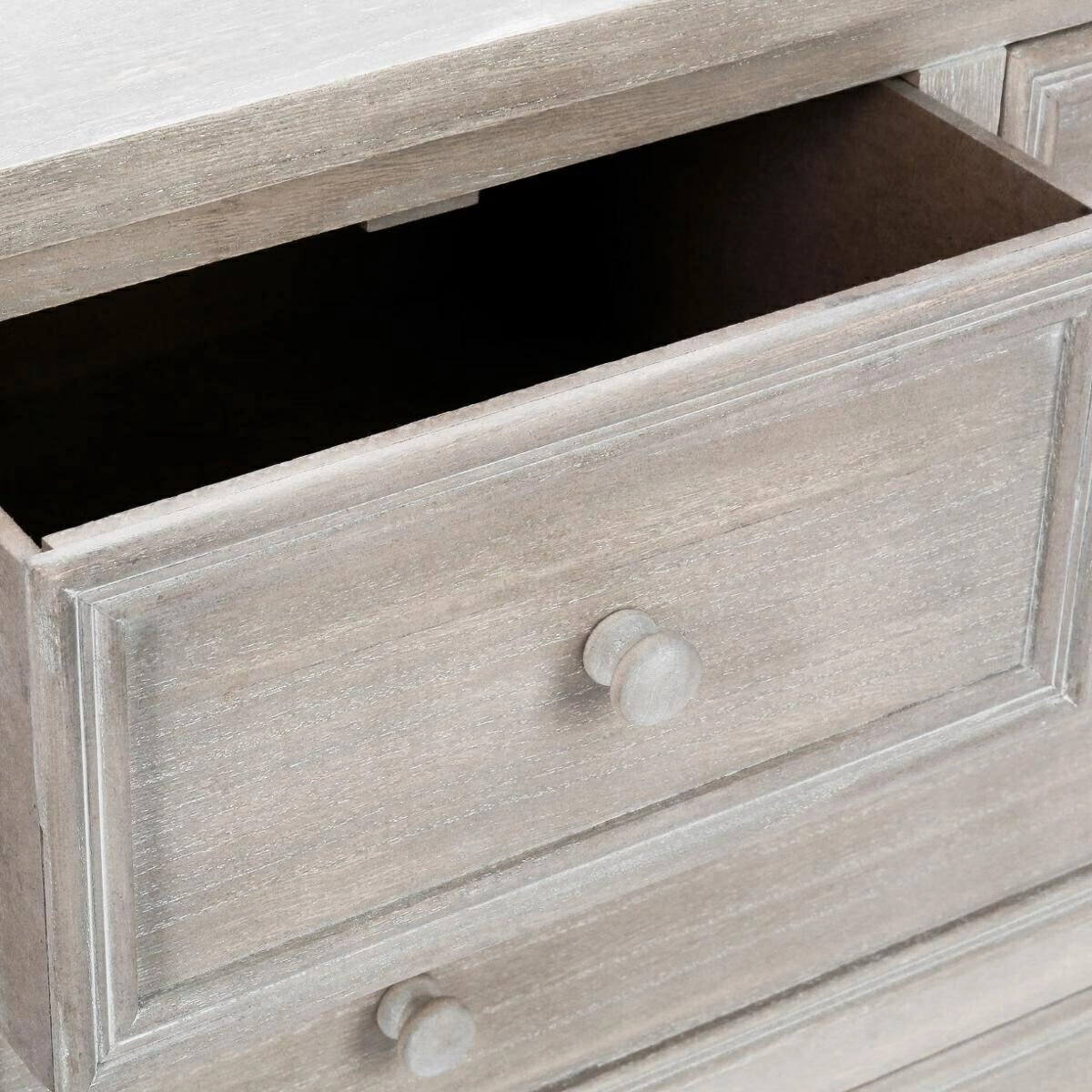 Komoda Charme 5 szuflad naturalna to nie tylko funkcjonalny mebel do przechowywania, ale również stylowy dodatek do każdej sypialni czy przedpokoju. Jej bielone drewno dodaje uroku i świeżości, tworząc harmonijną atmosferę we wnętrzu. Mimo swojej solidnej konstrukcji, komoda jest stosunkowo lekka, ważąc jedynie 15,5 kg, co ułatwia jej przenoszenie i dostosowywanie w pomieszczeniu.