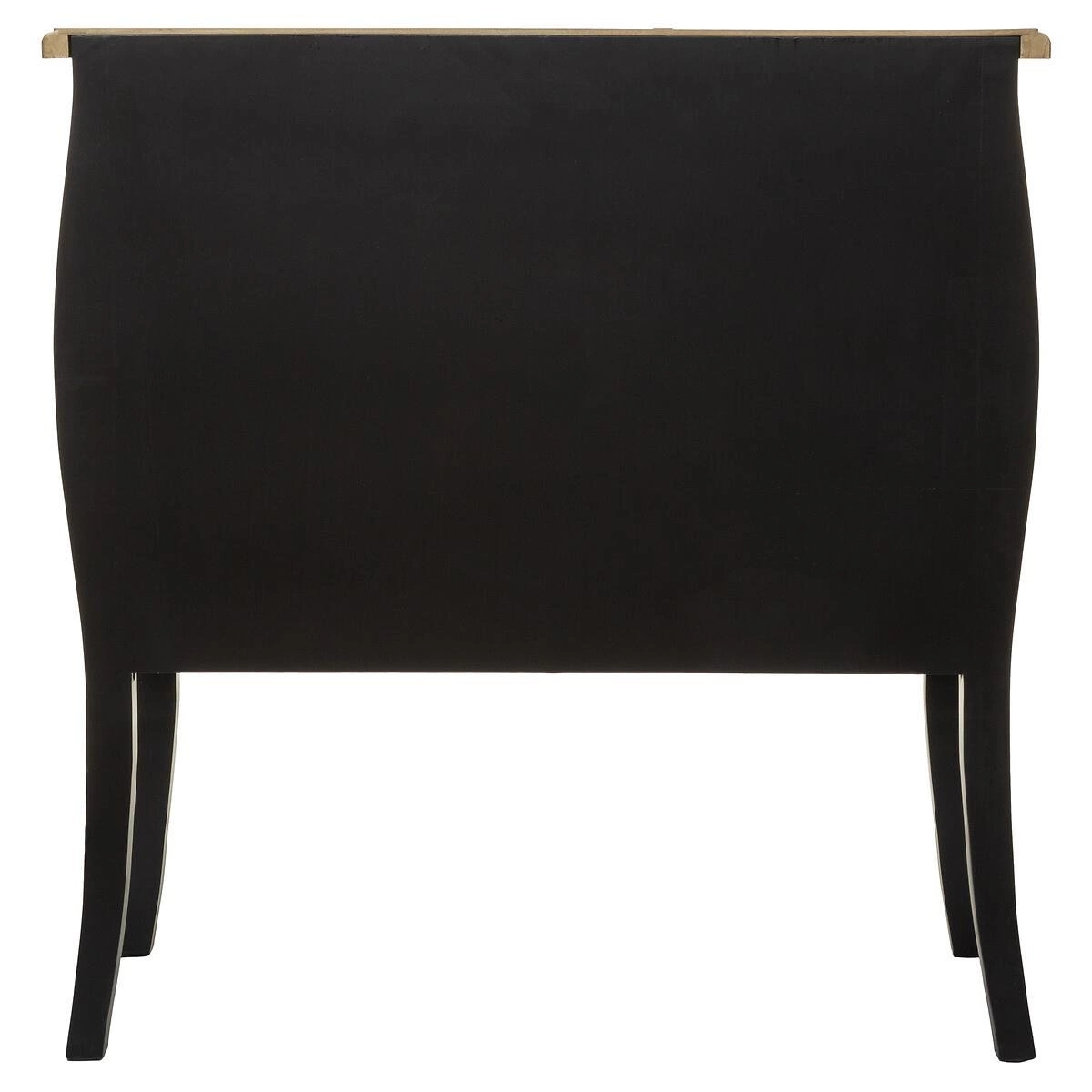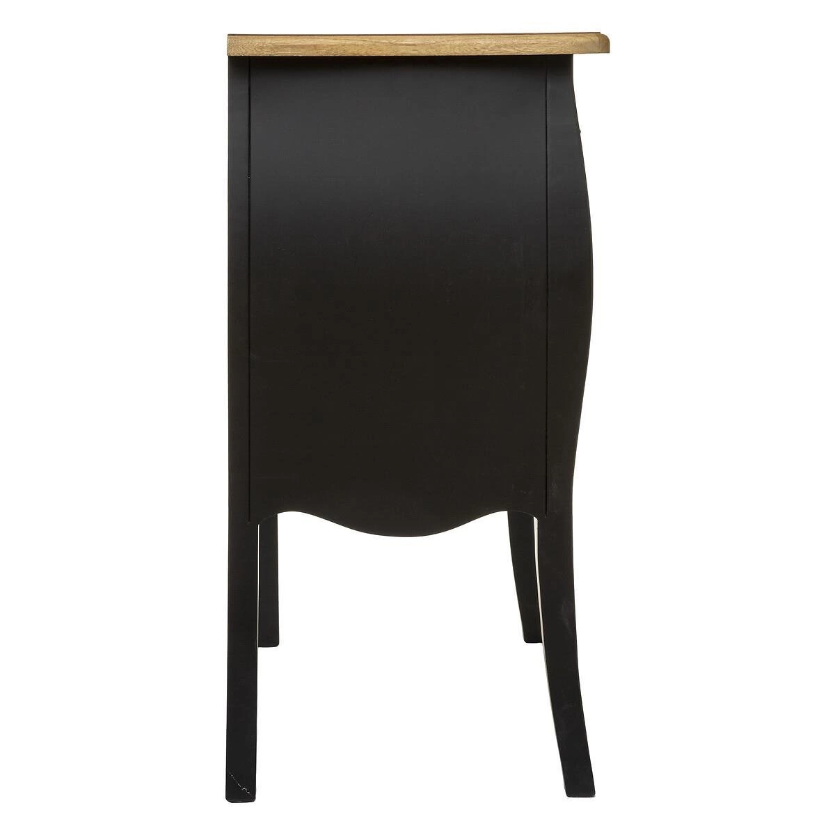 Komoda Chrysa w kolorze czarnym to mebel o niezwykłej pakowności. Trzy niezależne szuflady pomieszczą nie tylko ubrania, ale także inne przedmioty, takie jak książki, zabawki czy gry. Komoda na wysokich nóżkach o pękatym kształcie sprawdzi się we wnętrzach eklektycznych, glamour czy shabby chic.