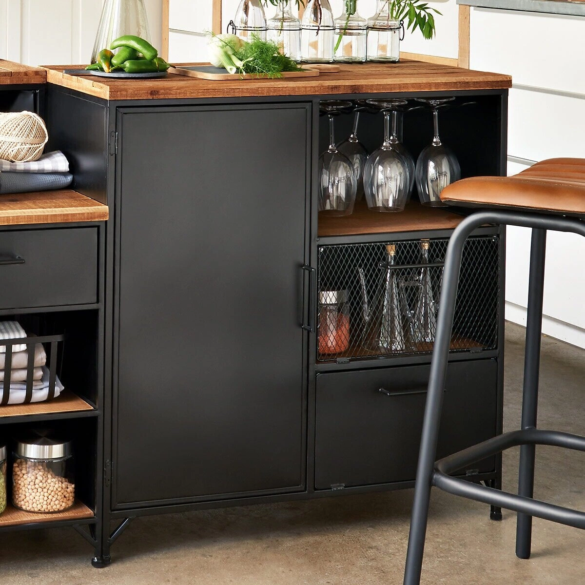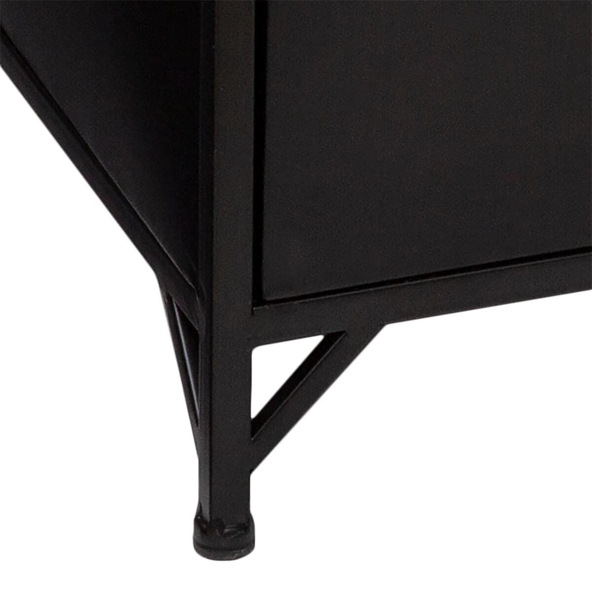 Komoda Cierna marki Atmosphera to industrialna komoda na czarnych metalowych nóżkach o szerokości 80 cm, która doskonale łączy funkcjonalność z wyrazistym stylem. Wykonana z trwałego połączenia metalu i płyty pilśniowej, cechuje się gładkimi frontami, sześcioma praktycznymi półkami oraz dwoma zamykanymi szafkami. Komoda przeznaczona jest zarówno do salonu, jak i do sypialni, a jej uniwersalny, czarny kolor z naturalnym blatem wprowadza do wnętrza nutę nowoczesnego loftu.