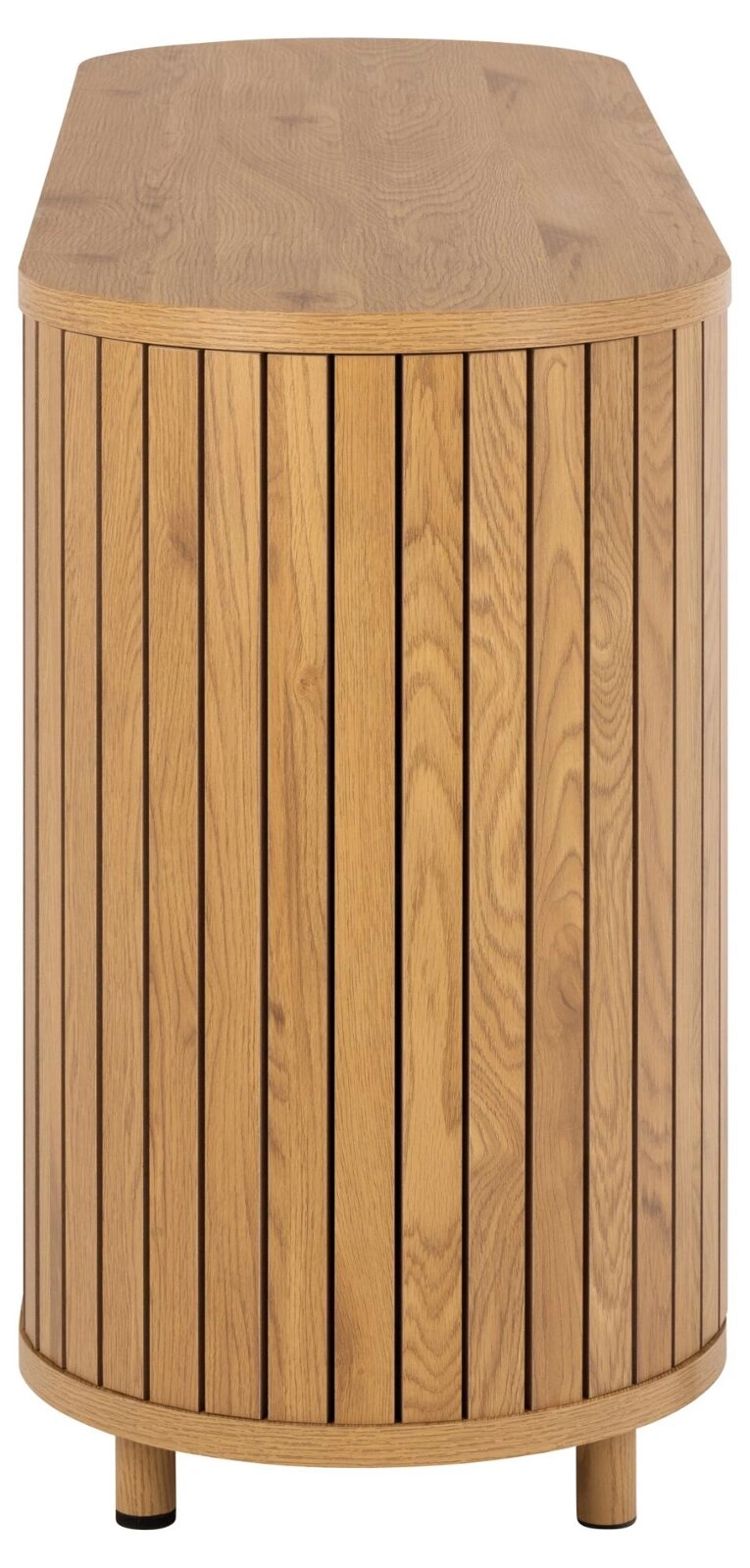 Wewnątrz komody Colima znajdziesz dwie pojemne szafki i dwie półki, które pomogą zorganizować zarówno ubrania, jak i domowe akcesoria, dokumenty czy zastawę stołową. Szeroki blat z owalnymi krawędziami idealnie nadaje się do wyeksponowania dekoracji, lampy lub rodzinnych zdjęć. Dzięki przemyślanej konstrukcji i pięciu stabilnym nóżkom mebel prezentuje się lekko, a jednocześnie jest stabilny i wytrzymały.