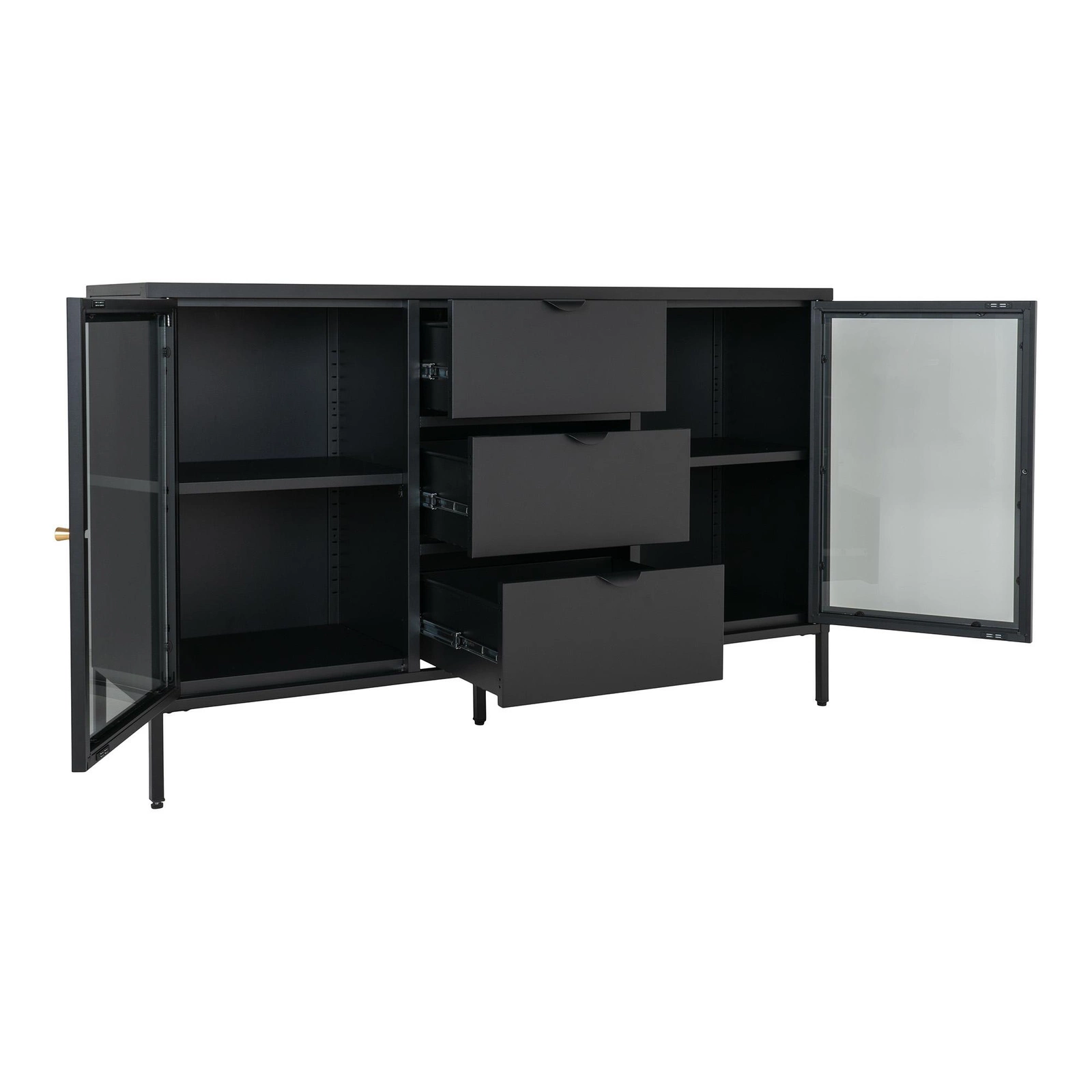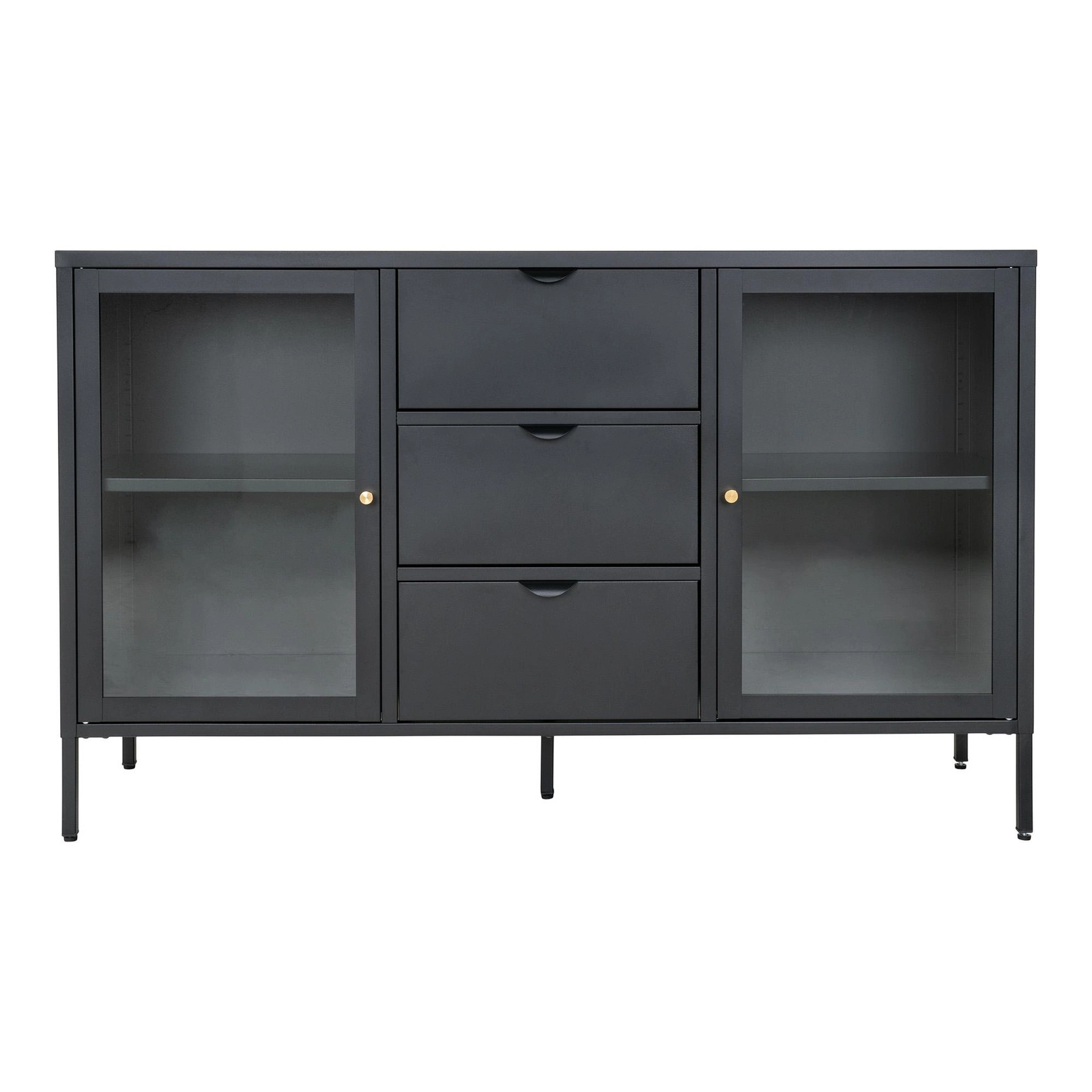 Marka Intesi z dumą prezentuje stalową komodę Dalby. Solidna konstrukcja z pięcioma nogami zapewnia stabilność, a 3 szuflady i 2 drzwi ze szklanymi frontami gwarantują dużo miejsca do przechowywania. Dzięki swojej konstrukcji, komoda jest idealna do przechowywania książek, dokumentów, a także innych drobiazgów, które chcesz mieć pod ręką.