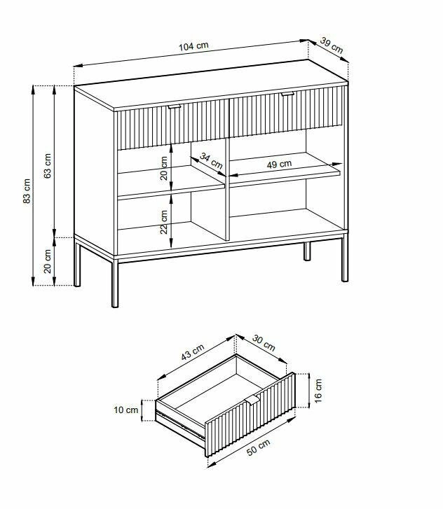 - Komoda o nowoczesnym designie z ryflowanymi frontami