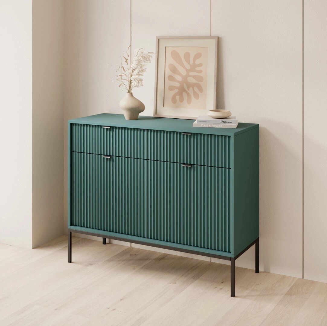 Komoda Delicious ryflowana zielona z czarnymi uchwytami