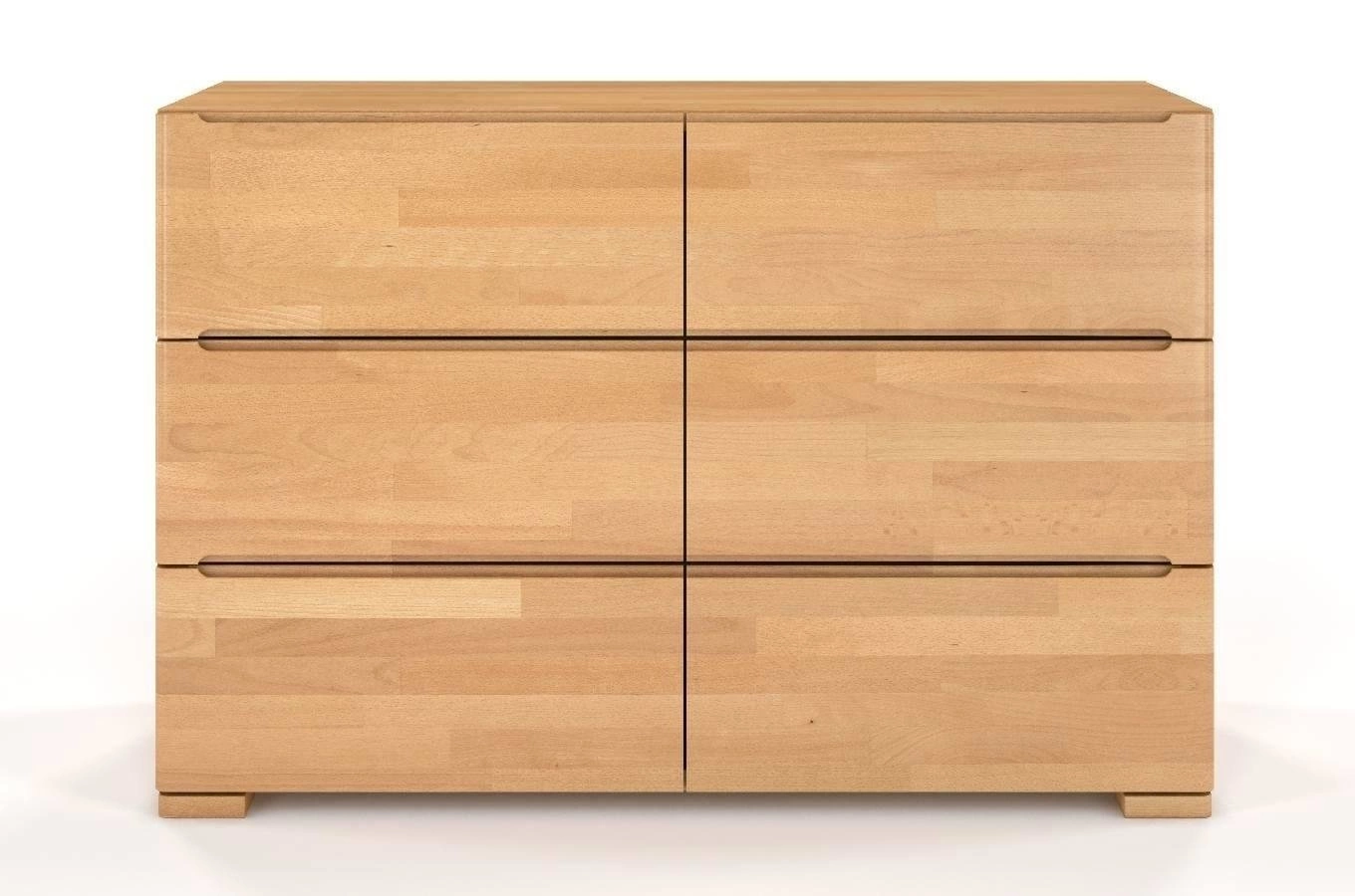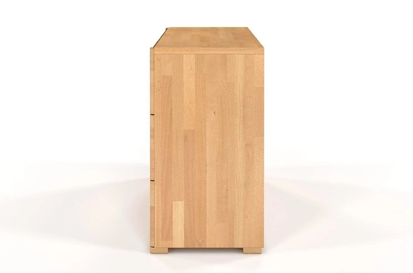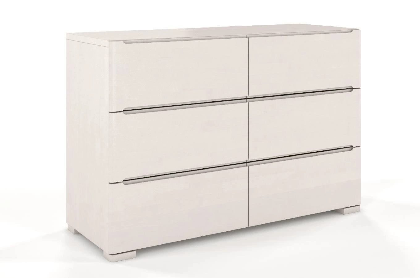 Komoda SPARTA wspiera się na subtelnych, ale niezwykle mocnych nogach, które dbają o jej stabilność. Narożniki nóg i boczne krawędzie komody zostały zaokrąglone, dodając opływowego kształtu i lekkości, jednocześnie podnosząc bezpieczeństwo mebla. Aby pogodzić wizualną skromność modelu i użytkową potrzebę wygody, uchwyty to frezowane wycięcia w krawędziach szuflad.