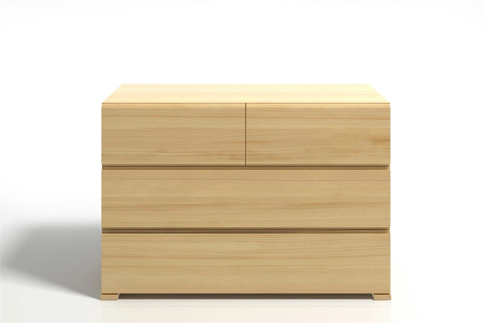 Jej uniwersalizm wynika z przemyślanej koncepcji eleganckiej prostoty. Komoda pozbawiona jest zbędnych zdobień. Klasyczne uchwyty w komodzie zastąpiono wycięciami we frontach szuflad. Górna krawędź górnej szuflady – sąsiadująca z blatem – została zaokrąglona, dodając meblowi lekkości.
