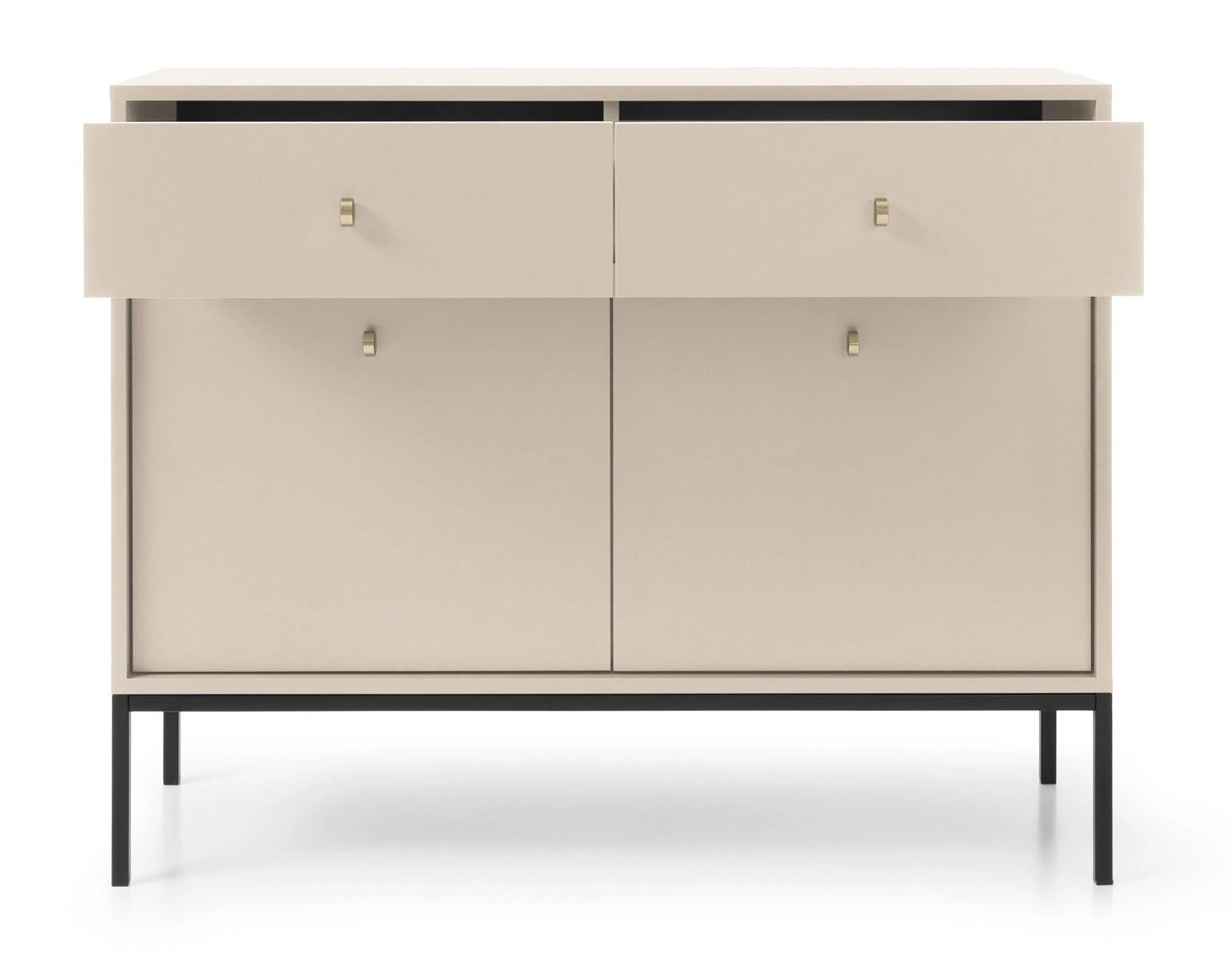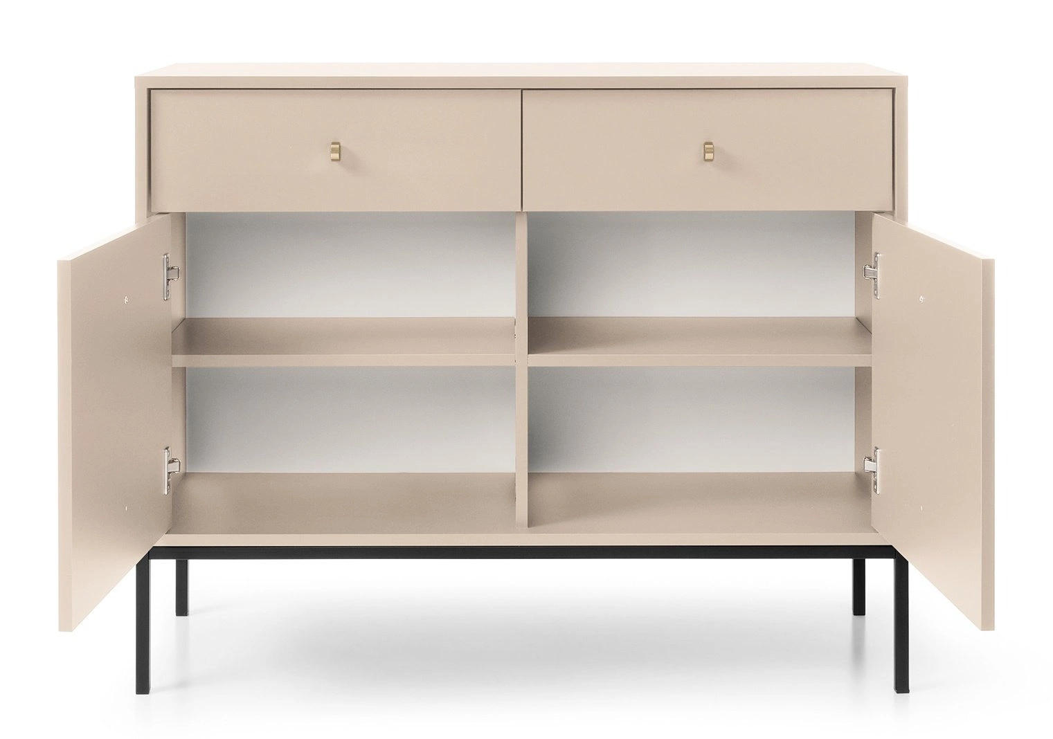 Komoda Evora beżowa marki Intesi upiększy Twoje wnętrze nie tylko pod kątem wystroju, ale okaże się też meblem nadzwyczaj funkcjonalnym w użyciu. Komodę w beżowym i czarnym kolorze wykonano z meblowej płyty, metalu i aluminium, dzięki czemu jest nie tylko elegancka, ale i solidna. Metal, meblowa płyta i aluminium sprawiają, że komody wytworzone z tych materiałów są ponadczasowe, wytrzymałe i wizualnie urozmaicają przestrzeń. Przekonaj się też o innych walorach tych surowców. Delikatnym niuansem, który nie burzy minimalistycznej i nowoczesnej stylistyki całości, są metalowe uchwyty.