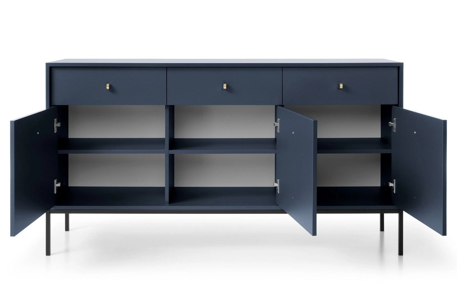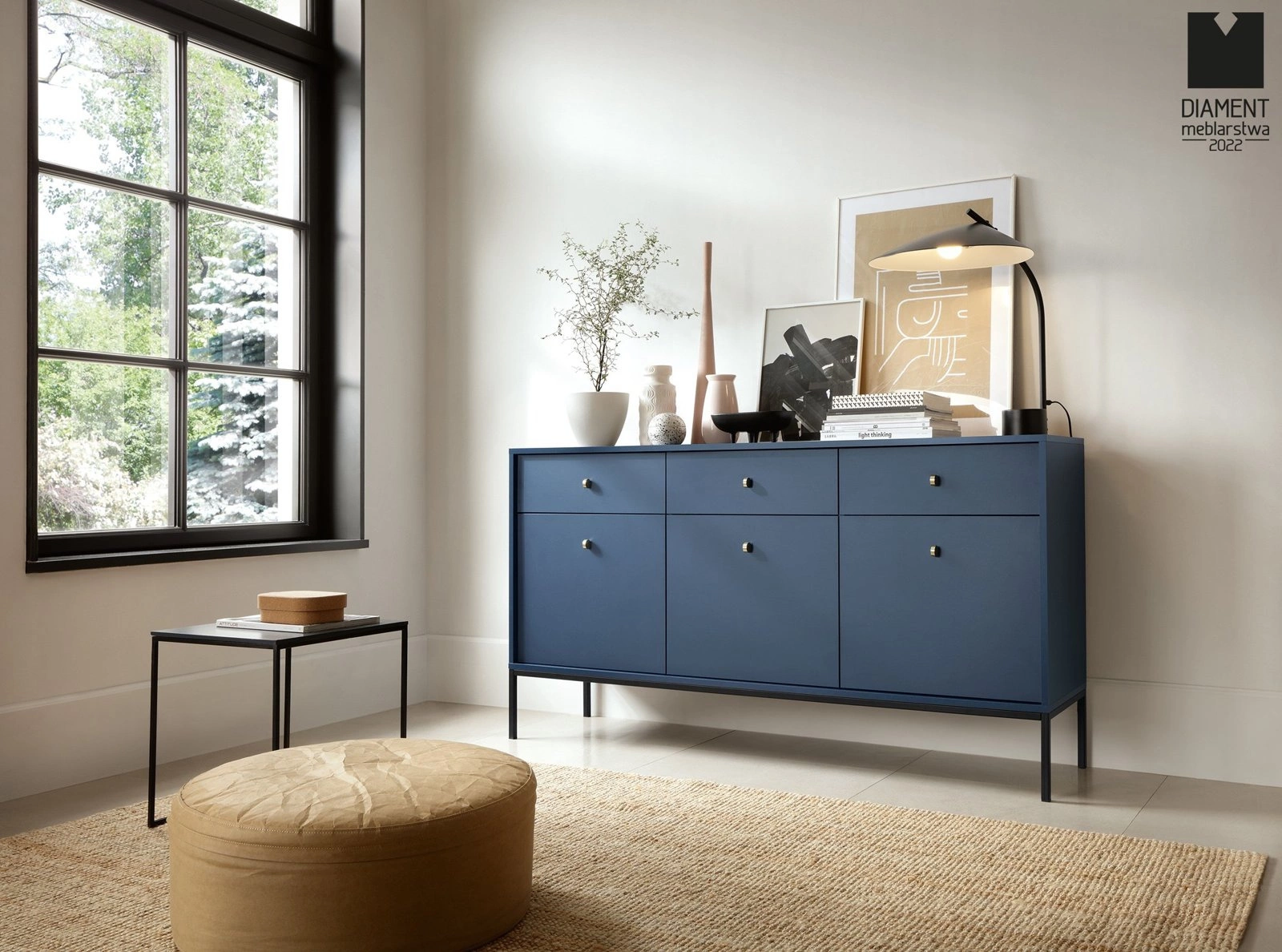 Komoda Evora duża granatowa marki Intesi to rewelacyjny mebel do przechowywania odzieży i nie tylko. Komodę w granatowym i czarnym kolorze wykonano z aluminium, metalu i meblowej płyty, dzięki czemu jest nie tylko gustowna, ale też porządna. Dzięki temu, że komodę stworzono z z aluminium, meblowej płyty i metalu, jest ona uniwersalna, wytrzymała i optycznie podkreśla charakter mieszkania, ale to nie wszystkie mocne strony tych materiałów. Metalowe uchwyty są wyrafinowaną dekoracją, która nie burzy nowoczesnej i minimalistycznej stylistyki komody.
