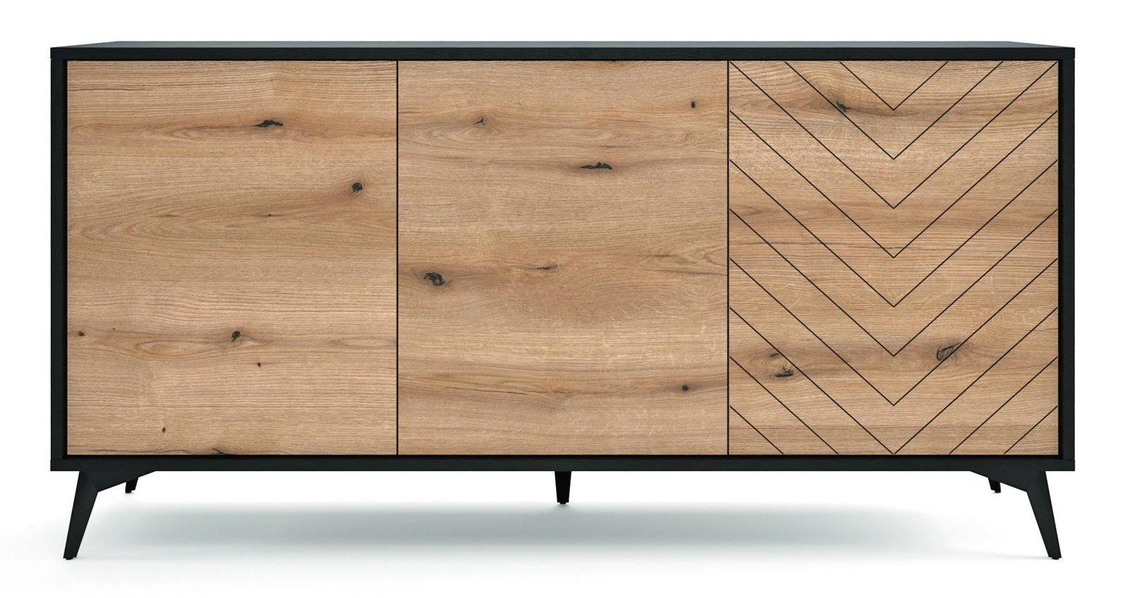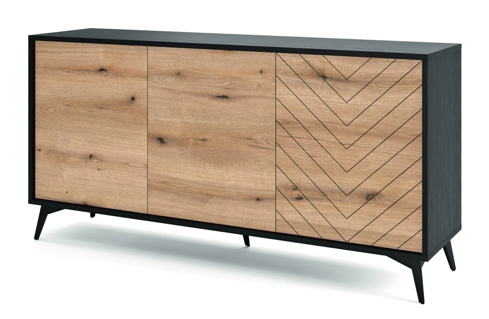 Komoda Fargo duża w jodełkę marki Intesi to oryginalny i praktyczny mebel, który rewelacyjnie sprawdzi się do organizacji różnej wielkości rzeczy. Porządna i całkiem spora komoda w brązowym i czarnym kolorze jest wytworzona z metalu i meblowej płyty. Dzięki temu, że komodę stworzono z z metalu i meblowej płyty, jest ona uniwersalna, trwała i wizualnie urozmaica pomieszczenie, jednak to nie wszystkie zalety tych surowców. Komoda nie posiada typowych uchwytów, a otworzyć możemy ją dzięki poręcznej technologii push to open. Poprzez delikatne naciśnięcie na front, mebel się otwiera.