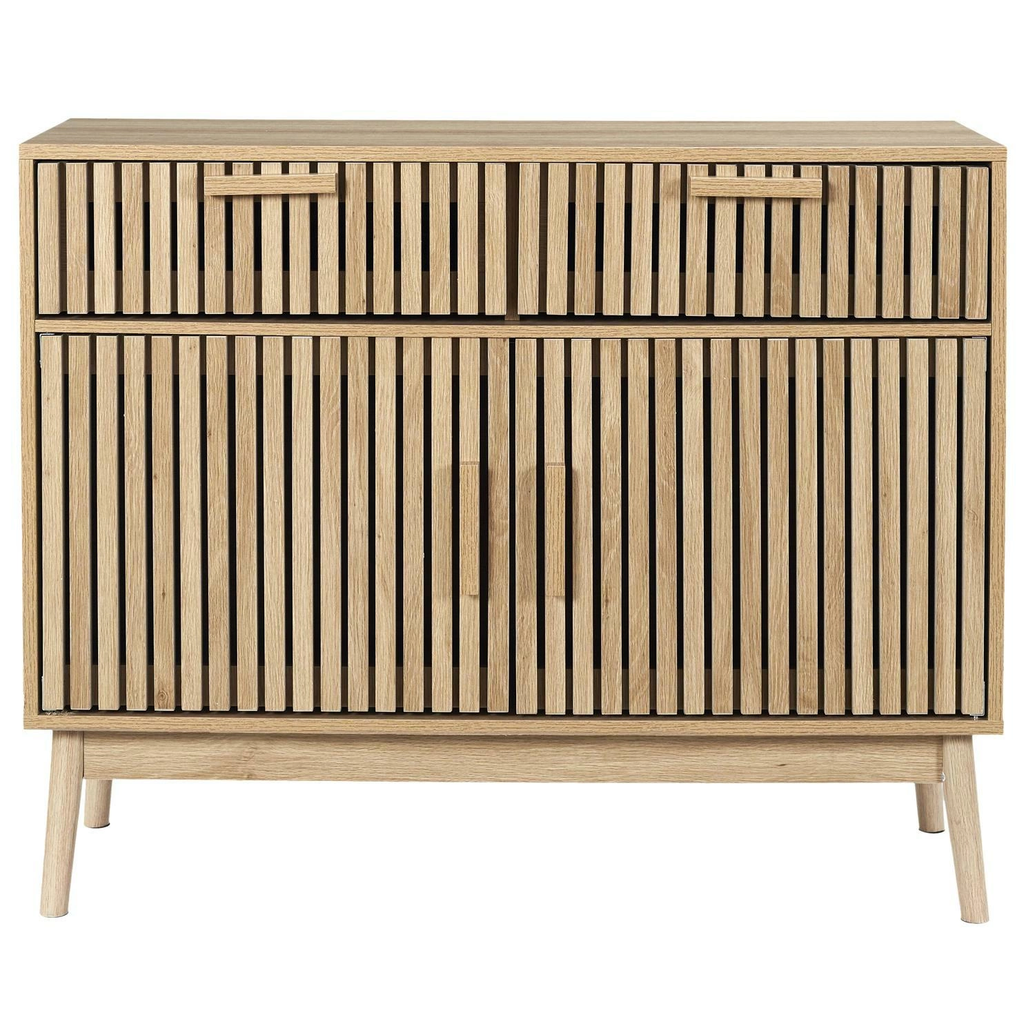 Komoda Klaus z szufladami w stylu boho | Intesi Uzyskaj idealne rozwiązanie do przechowywania w każdym pomieszczeniu dzięki stylowej komodzie od Intesi. Wykonana z płyty MDF oraz drewna sosnowego, posiada mnóstwo miejsca do przechowywania wszystkiego, czego potrzebujesz! Szukasz eleganckiego, trwałego i funkcjonalnego rozwiązania do przechowywania? Nie szukaj dalej niż komoda Klaus! Korpus oraz front mebla wykonane zostały z płyty MDF, natomiast nogi komody z drewna sosnowego. Posiada dwie szuflady oraz dwie szafki z miejscem do przechowywania, dzięki czemu jest idealna do organizacji niezbędnych rzeczy - jest to również jeden z elementów, którym będziesz chciał się pochwalić przed swoimi gośćmi. Front w klasyczne lamele jest nie tylko stylowy, ale też oferuje nowoczesny styl w każdym pomieszczeniu. Komoda Klaus z szufladami to idealny element wyposażenia każdego domu, ponieważ jest ona z serii Klaus dzięki czemu zachowasz spójność. O tym warto pamiętać! Solidna i trwała konstrukcja pozwala na wieloletnie użytkowanie Lekka konstrukcja ułatwia przenoszenie Stylowy i klasyczny design pasuje do każdego wystroju