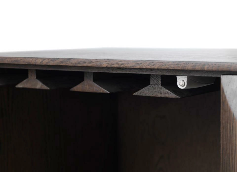 - Wbudowany barek z haczykami na kieliszki – wszystko, czego potrzebujesz do serwowania drinków, jest zorganizowane w jednym miejscu.