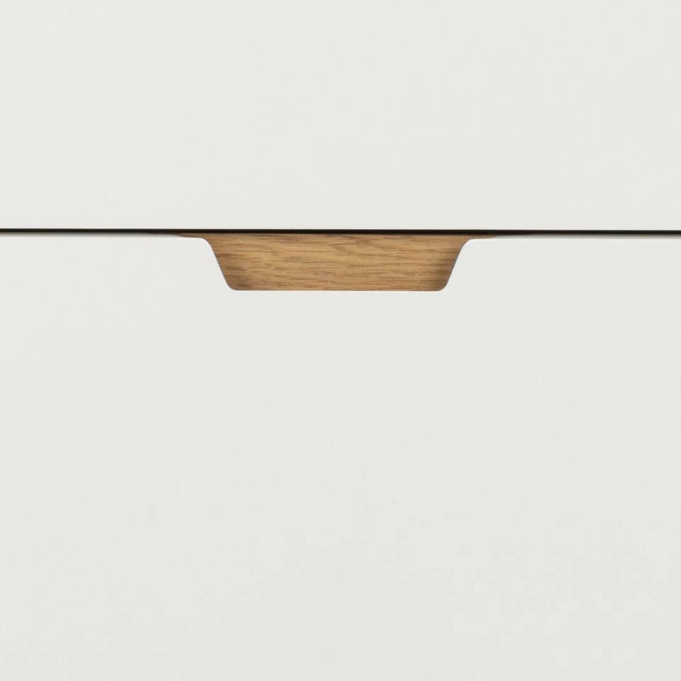 Wysoka jakość użytych materiałów gwarantuje trwałość i solidność mebla. Korpus i szuflady wykonane są z płyty MDF, natomiast nogi z drewna dębowego. To sprawia, że komoda jest stabilna i wytrzymała. Biel szuflad w połączeniu z naturalnym kolorem dębu to klasyczna i ponadczasowa kolorystyka, która sprawdzi się w każdym wnętrzu.