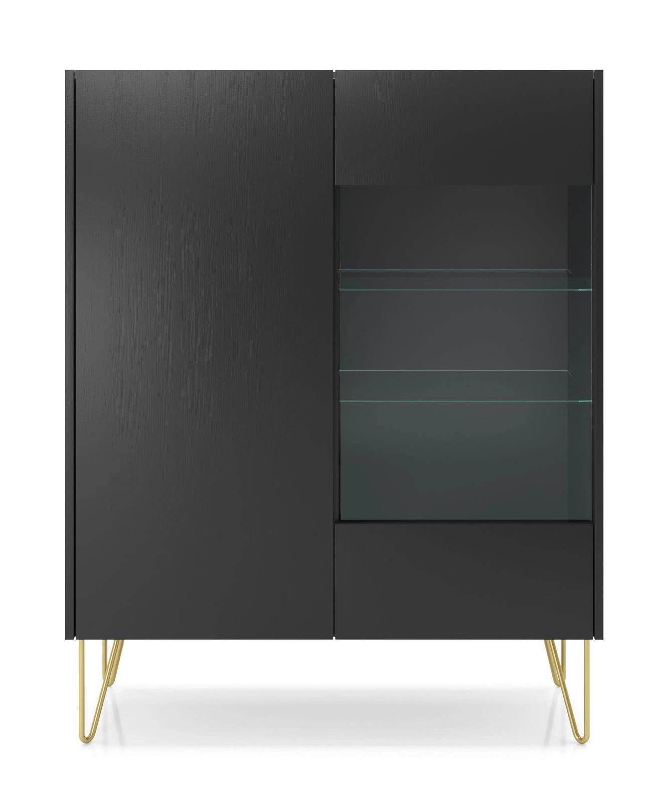 Komoda Marbren w czarnym kolorze posiada blat imitujący marmur. Posadowiona została na wysokich, metalowych nogach w kolorze złotym. Jej nowoczesny i efektowny wygląd z pewnością doda elegancji do Twojego wnętrza. Komoda posiada dwie głębokie szafki z wygodnymi półkami, a wykonana jest z płyty laminowanej 16 mm i obrzeża ABS 0,5 mm dla wysokiej jakości.