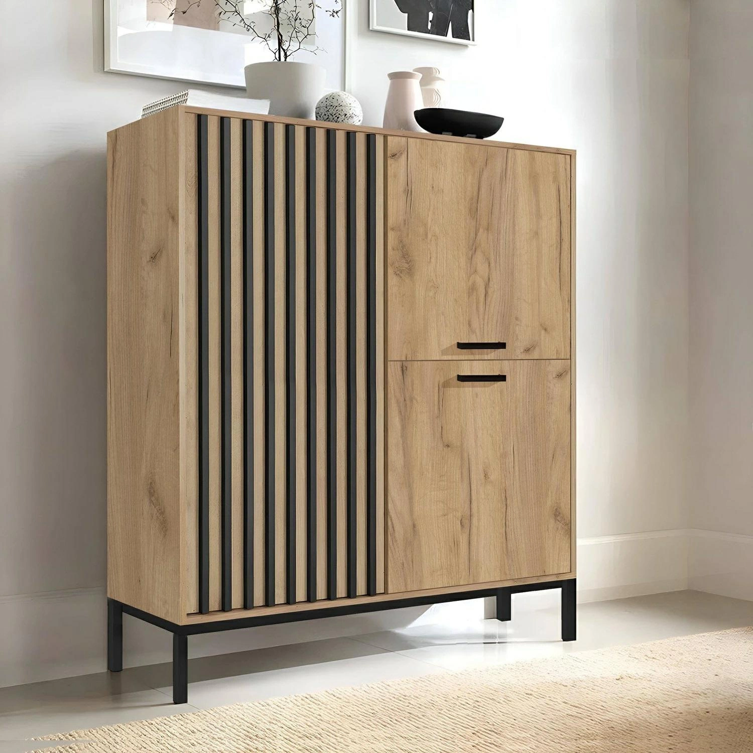 Komoda Markle wysoka dąb craft/czarny – funkcjonalność i nowoczesny design