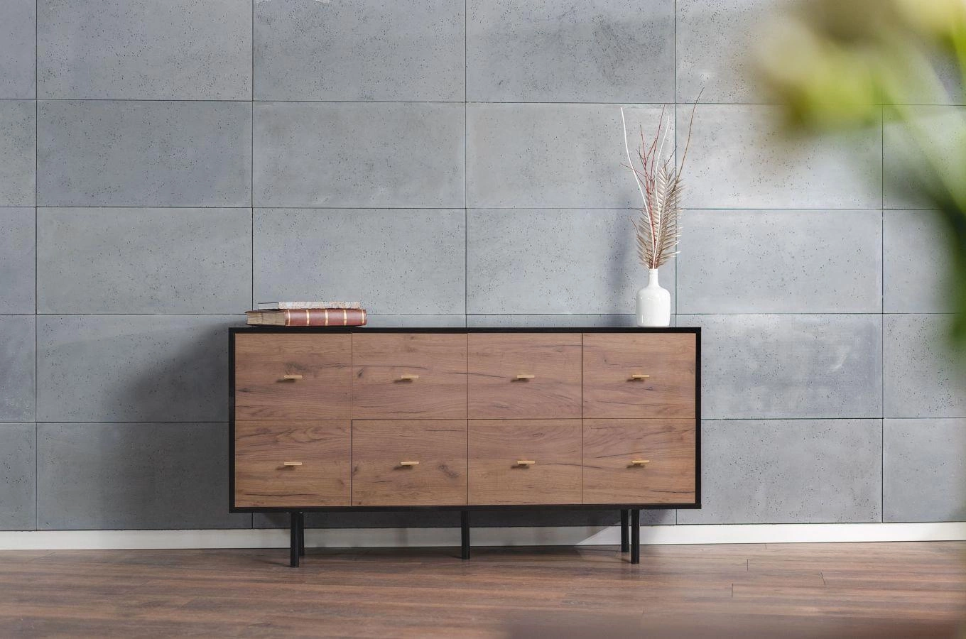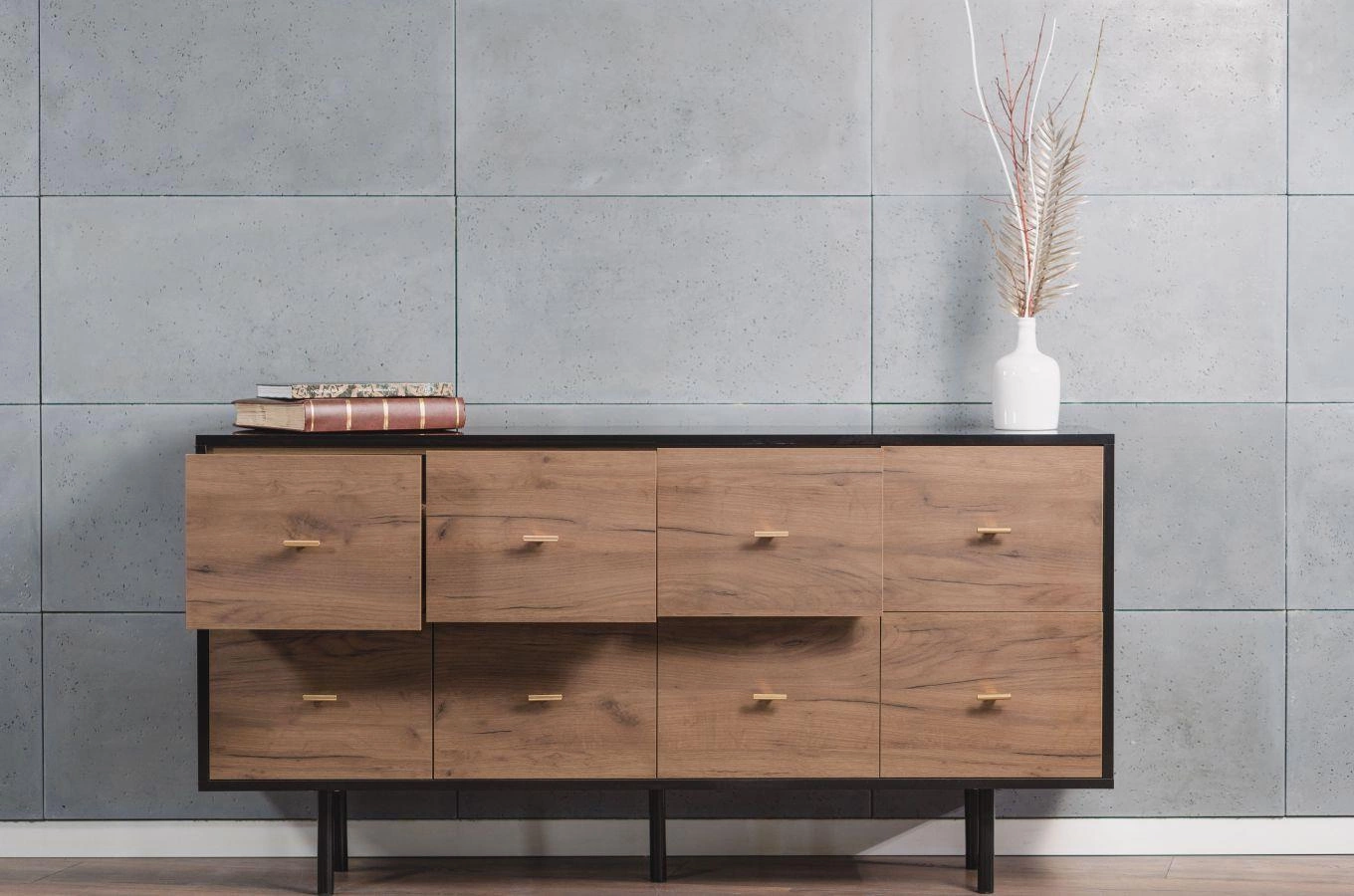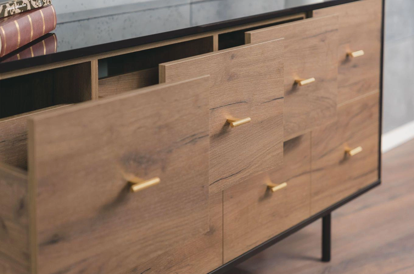 Dzięki zamontowaniu aż 8 szuflad, MAUD pozwoli uporządkować Twoje wnętrze w niezwykle łatwy i dyskretny sposób. Może służyć jako komoda na ubrania w sypialni, ale i jako miejsce na zastawę obiadową w jadalni. To od Ciebie zależy, gdzie i jak zdecydujesz się ją wykorzystać.