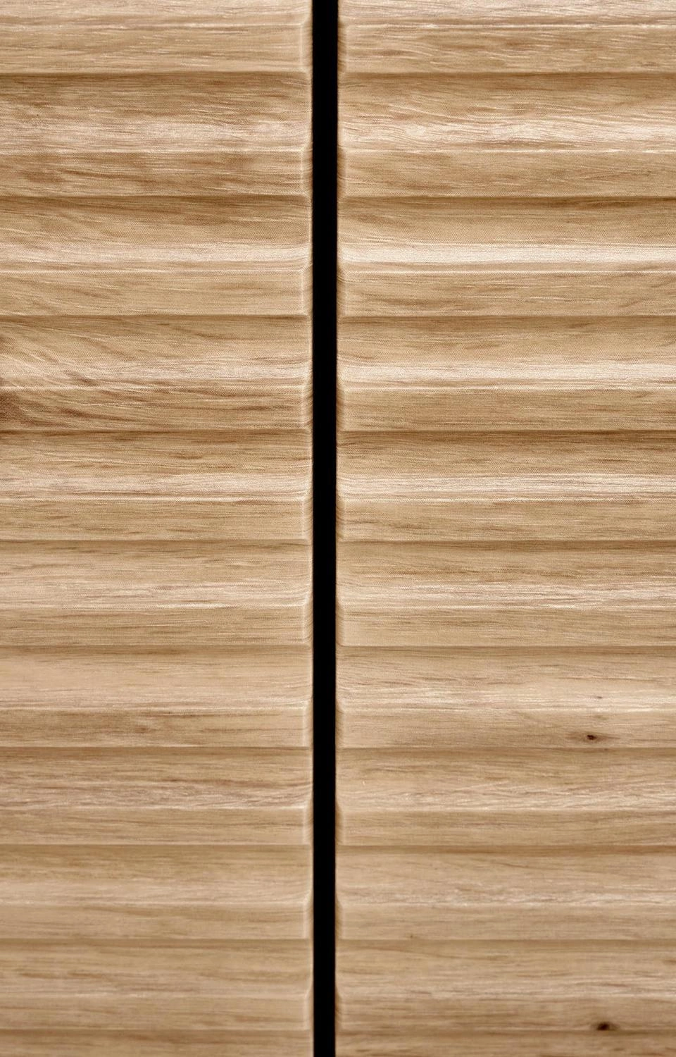 Wyraziste połączenie czarnych elementów z naturalnym dekorem dąb artisan sprawia, że komoda Nihala doskonale wpisuje się w nowoczesne oraz loftowe aranżacje. Frezowane poziomo fronty nadają bryle niepowtarzalny, designerski wygląd, a matowe wykończenie dodaje subtelnej elegancji. Ten model świetnie prezentuje się zarówno jako komoda do salonu, jak i funkcjonalny mebel do sypialni czy przedpokoju, idealnie komponując się z wnętrzami w stylu industrialnym.