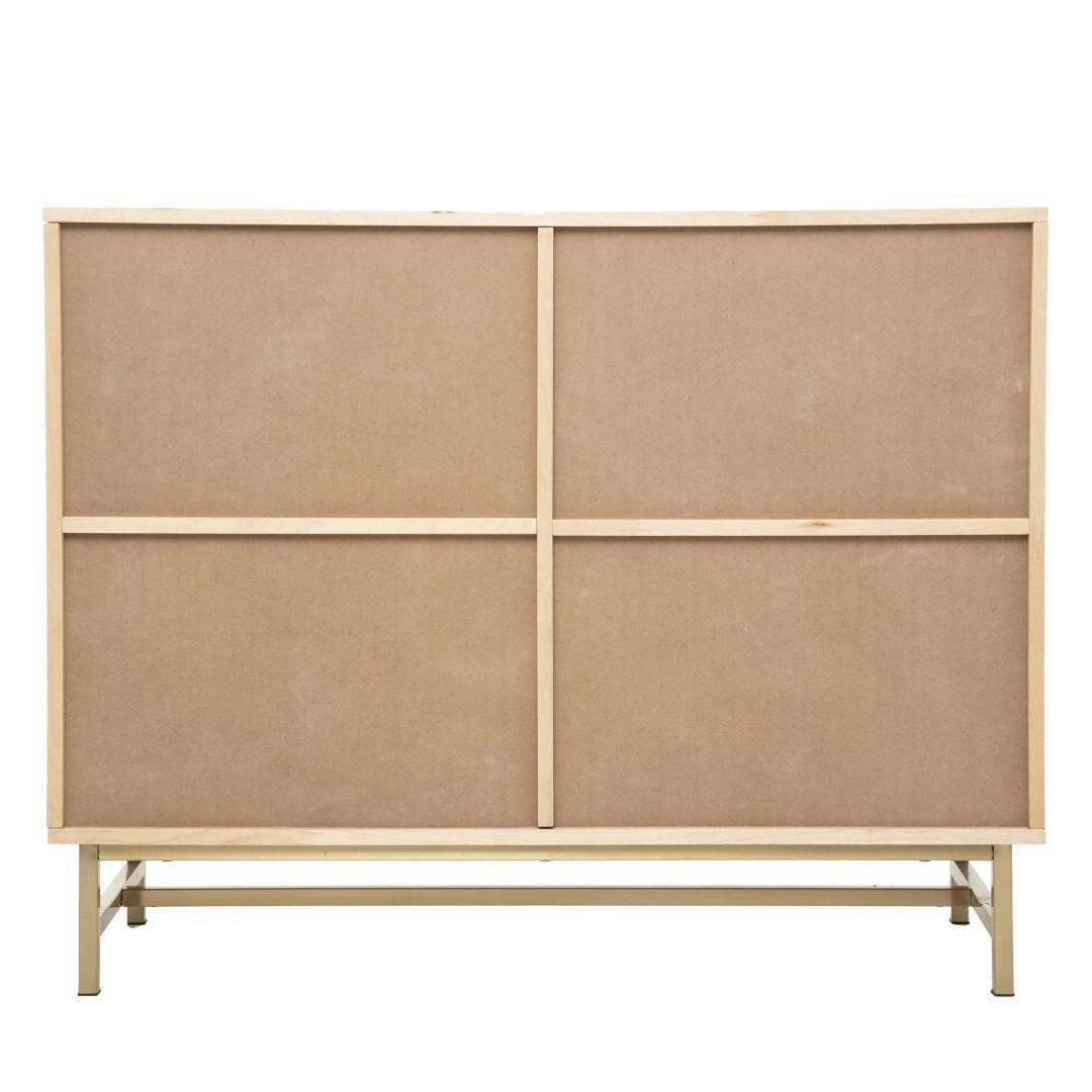 Komoda z rattanowymi rozsuwanymi frontami to mebel wykonany w stylu Boho. Charakteryzuje się on wykonaniem z naturalnych materiałów i bliskim kontakcie z naturą. Plecionka z rattanu umieszczona została w drewnianych- brzozowych frontach komody, dodając meblowi wizualnej lekkości. Zaletą Rayo są 2 szerokie półki z przesuwanymi drzwiczkami. Mebel sprawdzi się w salonie, przechowa twoją zastawę stołową lub inne przedmioty. Nogi komody oraz uchwyty zostały wykonane z metalu, pomalowanego na złoty kolor. Stanowią one subtelną dekorację, która nie zakłóca klasycznej i minimalistycznej stylistyki mebla. Korpus komody to niezwykle wytrzymała płyta meblowa, w okleinie imitującej drewno. Rayo o naturalnych barwach optycznie ociepli twoją przestrzeń. Ten urokliwy produkt z pewnością zawróci w głowie niejednej osobie. Jeśli chcesz w jednolity sposób urządzić swoje mieszkanie postaw na inne meble z tej samej serii!