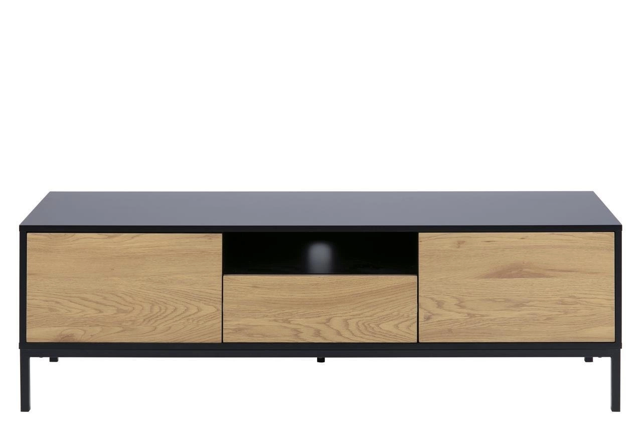 Komoda Seaford 140 cm marki Actona to połączenie surowego stylu industrialnego z funkcjonalnością, której oczekujesz w nowoczesnym salonie. Mebel zachwyca kontrastem czarnego metalu i naturalnego wybarwienia dębu, a praktyczne rozwiązania – szuflada, dwie szafki i otwarta półka – pozwalają wygodnie przechowywać zarówno drobiazgi, jak i sprzęt RTV. Dzięki szerokości 140 cm komoda idealnie sprawdzi się jako komoda pod telewizor lub stylowy element wyposażenia salonu.