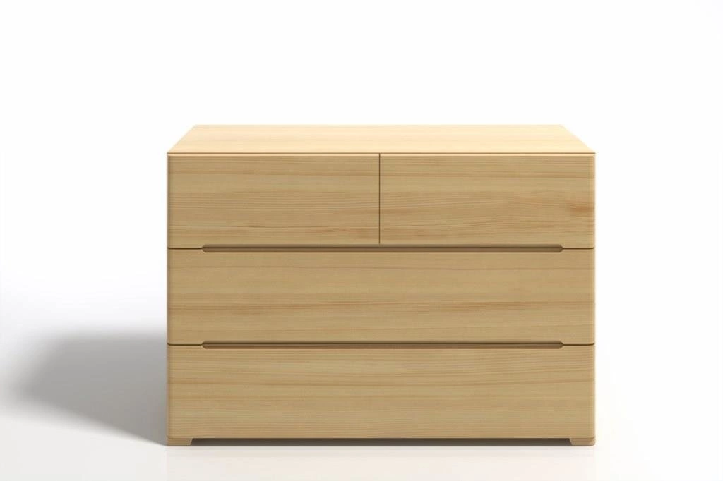 Komoda SPARTA wspiera się na subtelnych, ale niezwykle mocnych nogach, które dbają o jej stabilność. Narożniki nóg i boczne krawędzie komody zostały zaokrąglone, dodając opływowego kształtu i lekkości, jednocześnie podnosząc bezpieczeństwo mebla. Górny blat jest prosty i pozbawiony zdobień, dzięki temu stanowi kolejną powierzchnię, którą można dodatkowo zagospodarować.