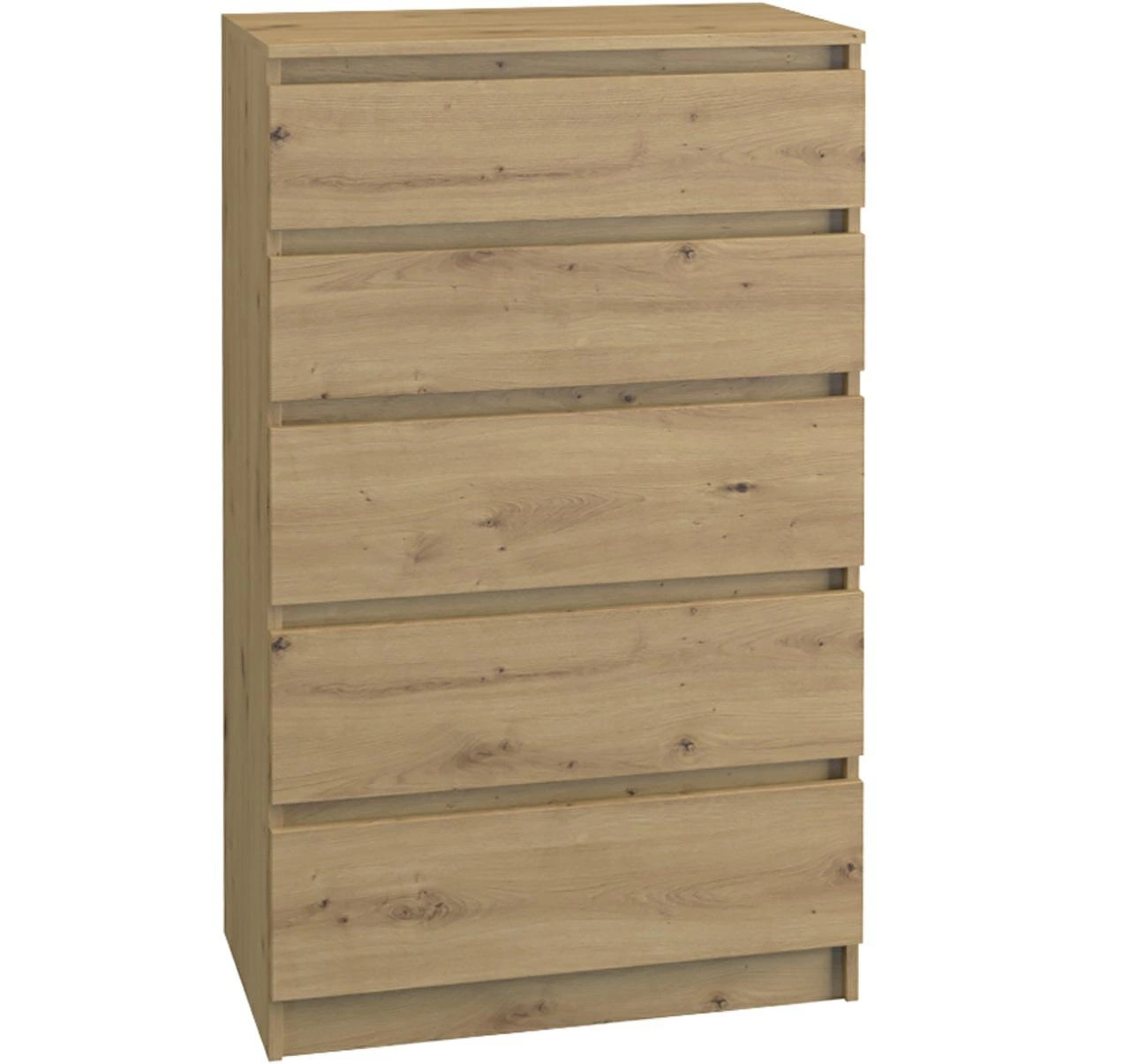 Komoda została wyposażona jest w szuflady na prowadnicach rolkowych, które gwarantują płynne i ciche otwieranie oraz zamykanie. Dzięki temu organizacja przestrzeni staje się łatwa i wygodna. Jako produkt polski, komoda Valda reprezentuje najwyższe standardy jakości i solidności. Wykonana z płyty o grubości 18 mm, zapewnia trwałość i stabilność, które będą cieszyć przez wiele lat użytkowania. Dostępna w różnych kolorach: biały, dąb artisan i antracyt/dąb, komoda daje możliwość dopasowania do indywidualnych preferencji oraz stylu aranżacji wnętrza. Dzięki swojemu nowoczesnemu designowi, wysokiej jakości wykonaniu i polskiemu pochodzeniu, komoda Valda stanowi doskonały wybór dla tych, którzy cenią sobie zarówno funkcjonalność, jak i estetykę w swoim domu.