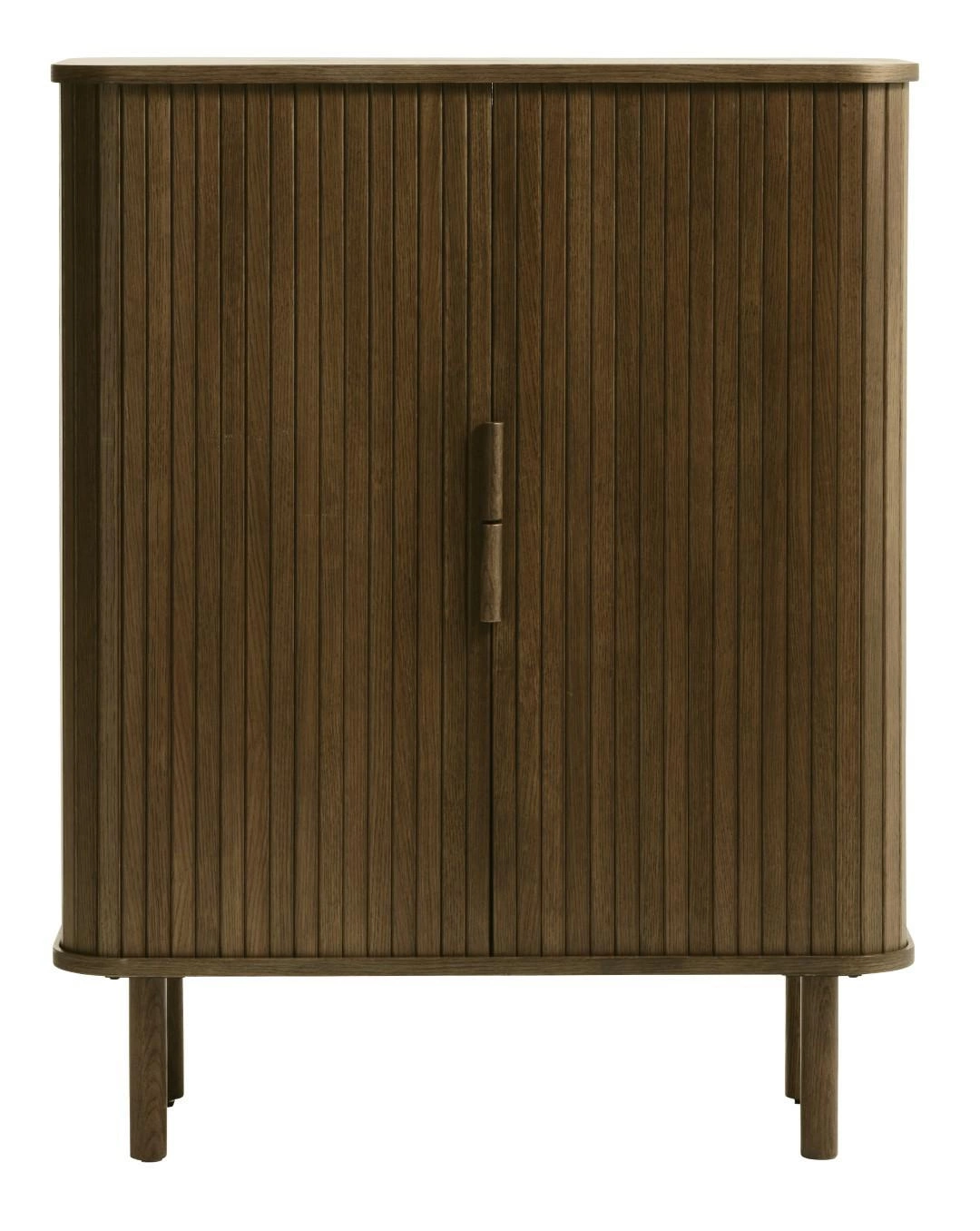 Komoda wysoka ryflowana Vocan marki UNIQUE Furniture A/S to propozycja dla miłośników nowoczesnego designu inspirowanego naturą. Mebel o wymiarach 113×90×40 cm łączy w sobie stylowy ryflowany front z solidnym fornirowanym dębem w odcieniu dymionym, osadzony na smukłych dębowych nóżkach. Ta komoda do salonu lub sypialni oferuje przemyślaną przestrzeń do przechowywania w eleganckiej, wysokiej formie, wzbogacając każde wnętrze ciepłem naturalnego drewna.