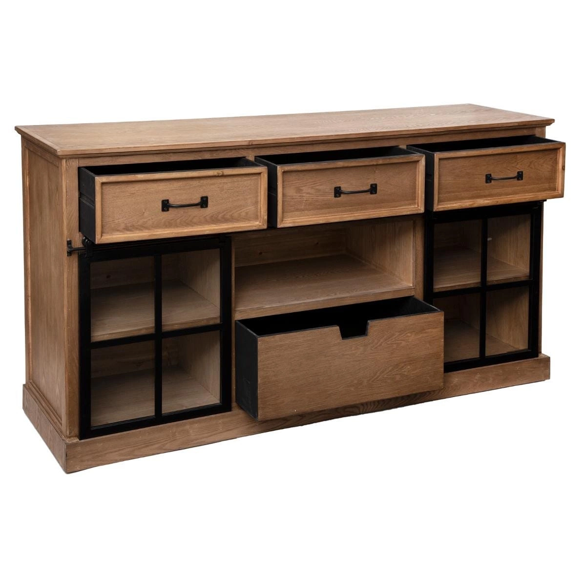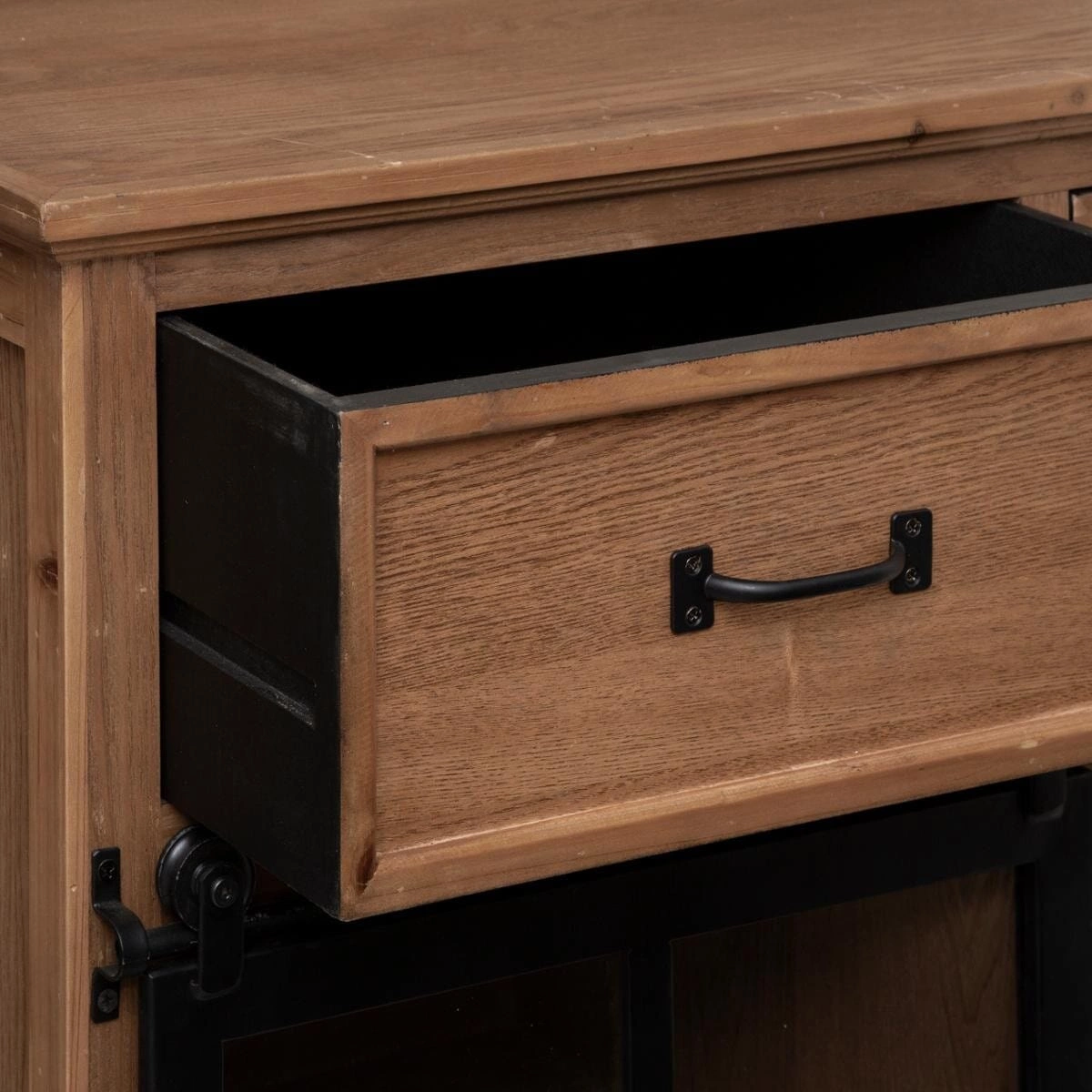 - Posiada 4 szuflady, otwartą szafkę oraz dwie półki za szklanymi drzwiami - mnóstwo miejsca na przechowywanie.