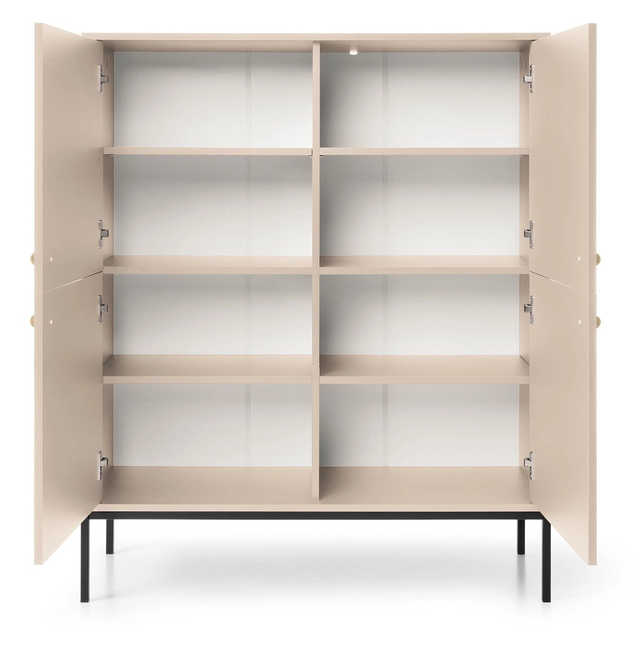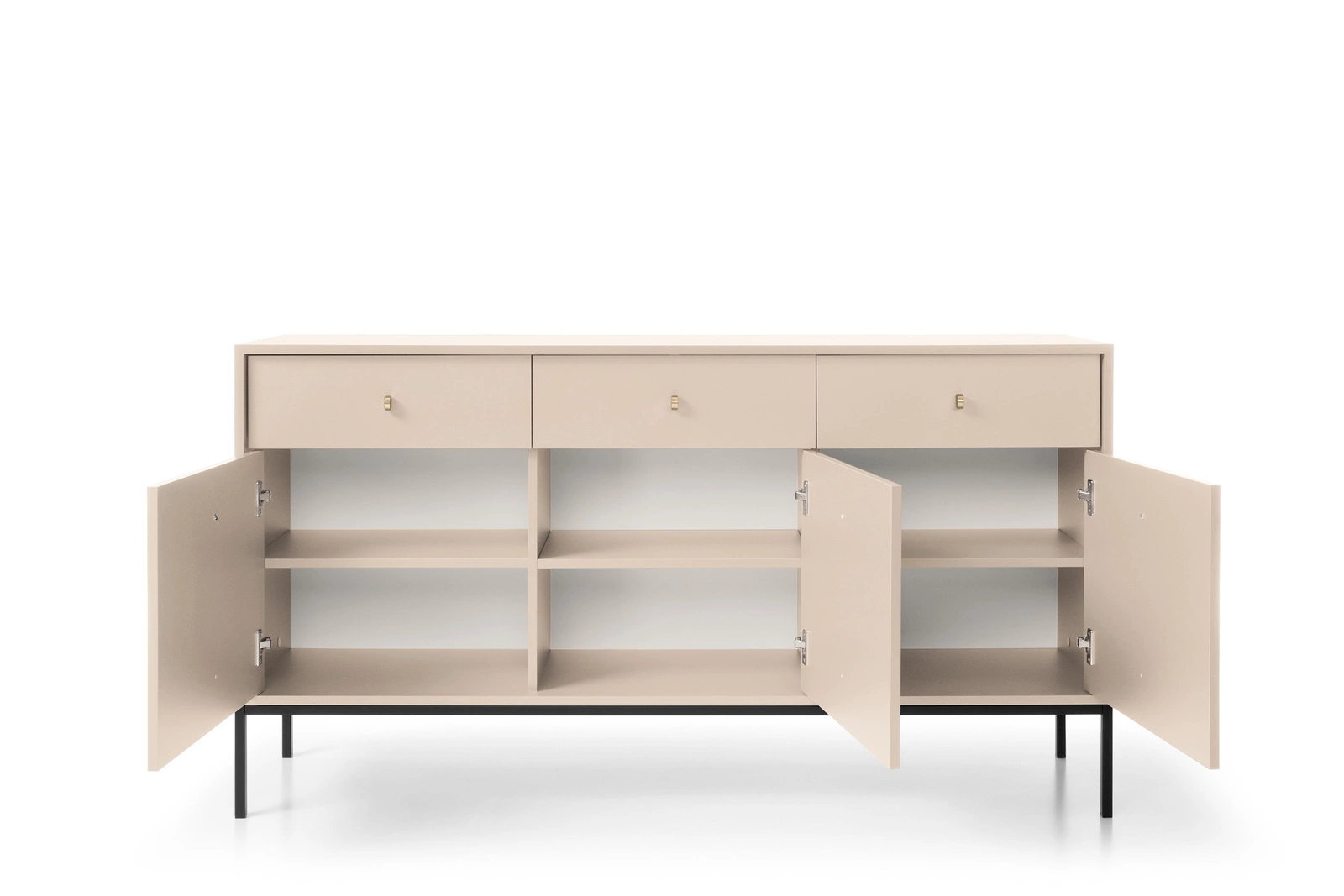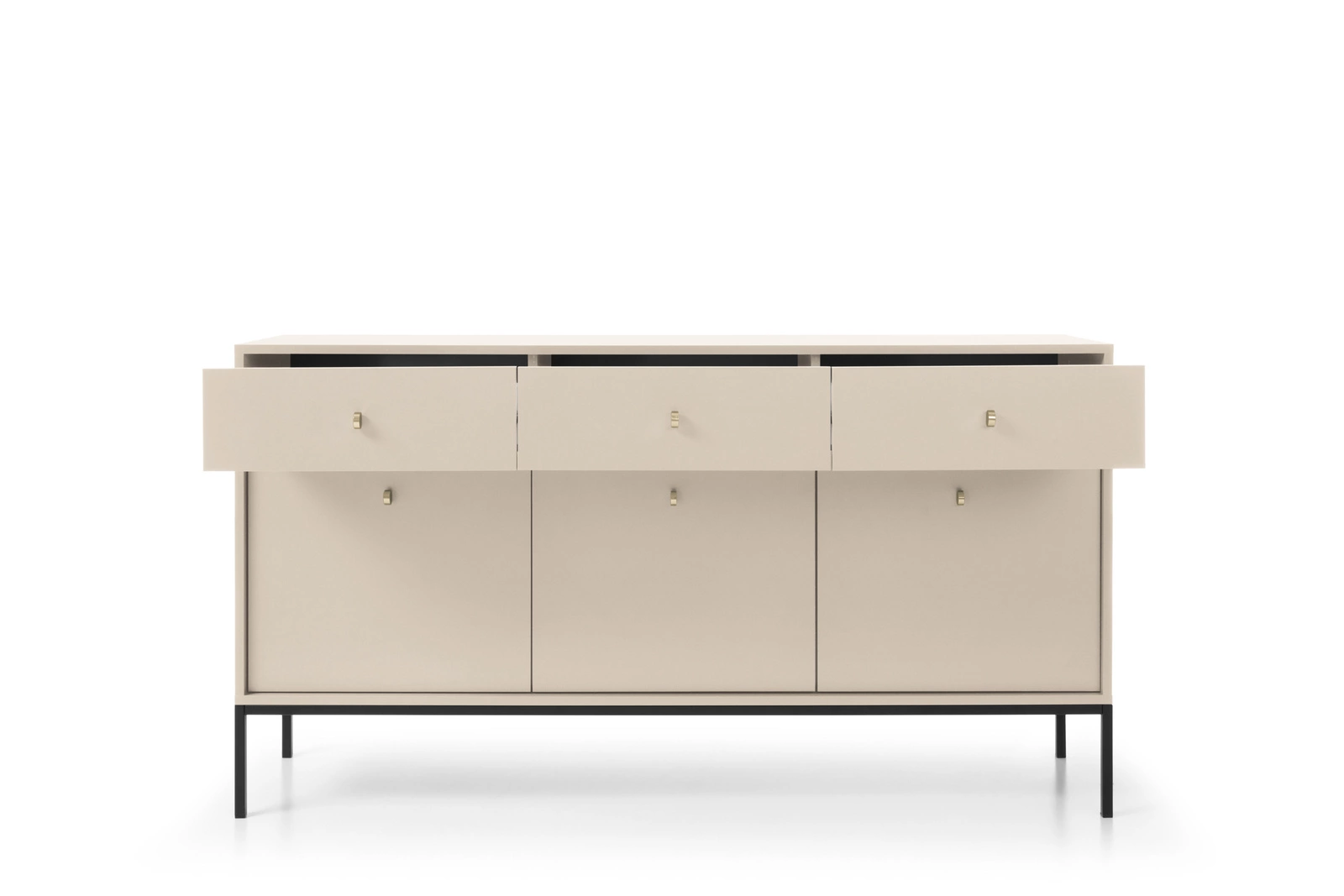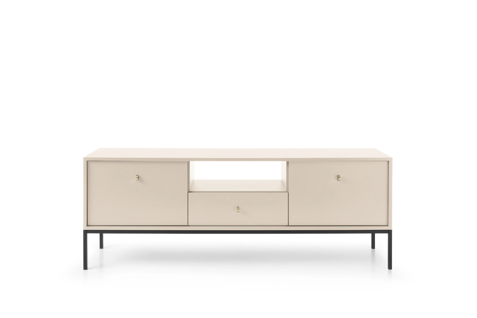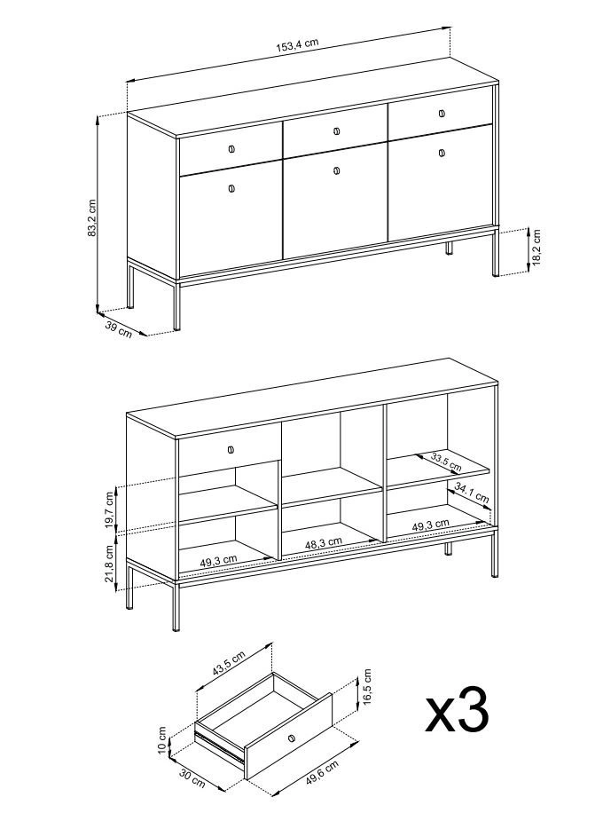 Przemyślany projekt sprawia, że komody z kolekcji są bardzo praktyczne oraz przestronne. Wybór mebla o najbardziej interesujących nas wymiarach sprawia, że komoda bez wątpienia będzie odpowiedzią na Twoje wymagania. Do wyboru mamy wysoką komodę z szafkami oraz dwie niższe komody z szufladami i szafkami w których z łatwością przechowasz zarówno większe rzeczy, jak i wszystkie niezbędne drobiazgi. Nawet wypełnione po brzegi komody zachowują się stabilnie, ponieważ cała forma mebli jest oparta na czterech nogach. Pod meblami zmieści się każdy robot sprzątający, ponieważ jej konstrukcja osadzona jest na wysokich nóżkach. Ta zaleta ułatwia również tradycyjne odkurzanie, a także mycie podłogi mopem. Ciekawym dopełnieniem kolekcji jest stolik kawowy. Ponadczasowy stolik posiadający szufladę oraz półkę, a jednocześnie o dość uniwersalne wielkości, dzięki czemu bez żadnych przeszkód możesz wstawić go do pomieszczeń o różnorodnych metrażach.