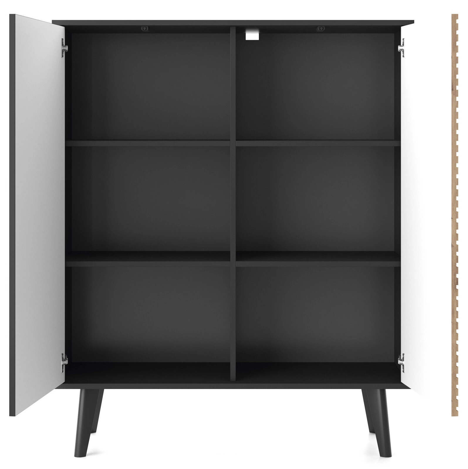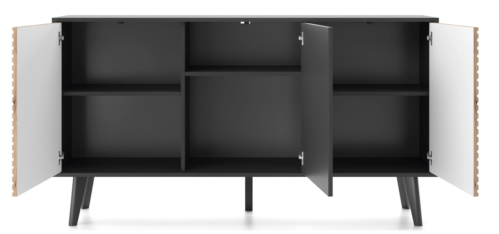 Zestaw mebli do salonu Tanga oferuje wyjątkową kombinację stylu loftowego i nowoczesnego minimalizmu, gwarantując niepowtarzalną atmosferę. Surowość industrialnej estetyki jest łagodzona ciepłem naturalnego drewna i energią czarnego koloru. Zestaw mebli do salonu dostarcza funkcjonalnych elementów, takich jak szafka RTV z frezowanymi frontami, stolik kawowy z dodatkową szufladą, a także komody w różnych rozmiarach i konfiguracjach, które zapewniają komfort i luksus, a jednocześnie spełnią rolę praktycznego miejsca do przechowywania. Każdy detal, od frezowanych frontów po przemyślaną formę, świadczy o najwyższej jakości zestawu do salonu Tanga. Inwestując w zestaw Tanga, inwestujesz w design, jakość i piękno, które przekształcą Twoje wnętrze w przestrzeń pełną komfortu, spokoju i unikalnego stylu.