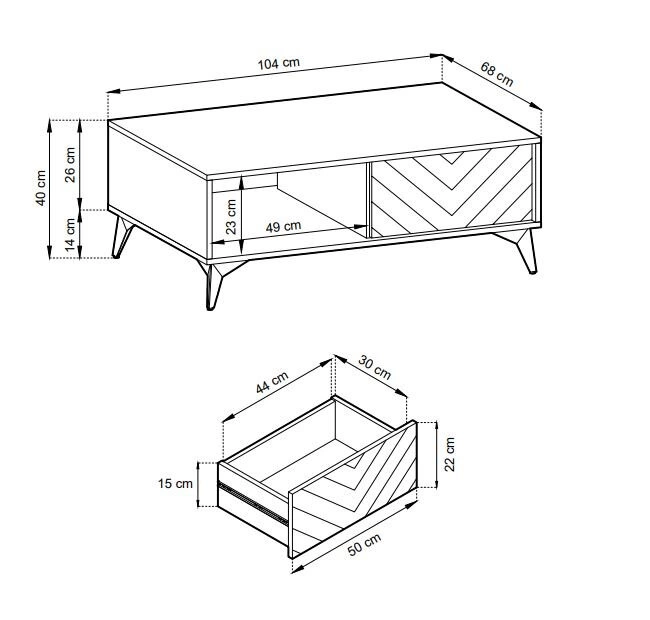 - Stolik w jodełkę (wys. 40 x szer. 104 x gł. 68 cm)