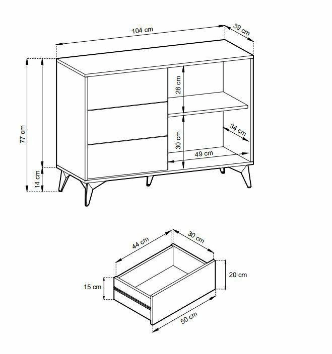 - Komoda z szufladami w jodełkę (wys.77 x szer. 104 x gł. 39 cm)