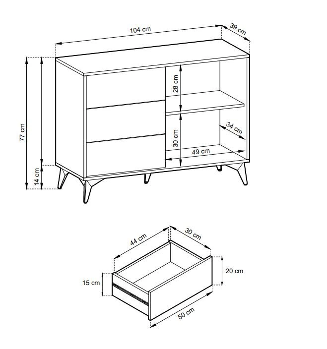 - Komoda w jodełkę (wys. 77 x szer. 104 x gł. 39 cm)