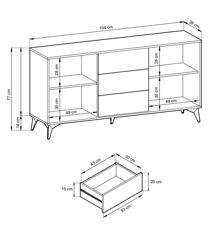 - Komoda duża z szufladami (wys. 77 x szer. 154 x gł. 39 cm)