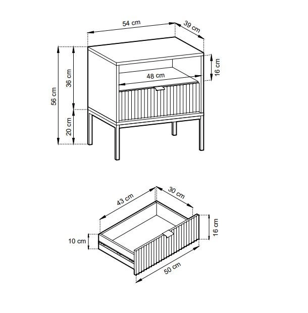 - Szafka nocna ryflowana (Wysokość: 56, Szerokość: 54, Głębokość: 39)