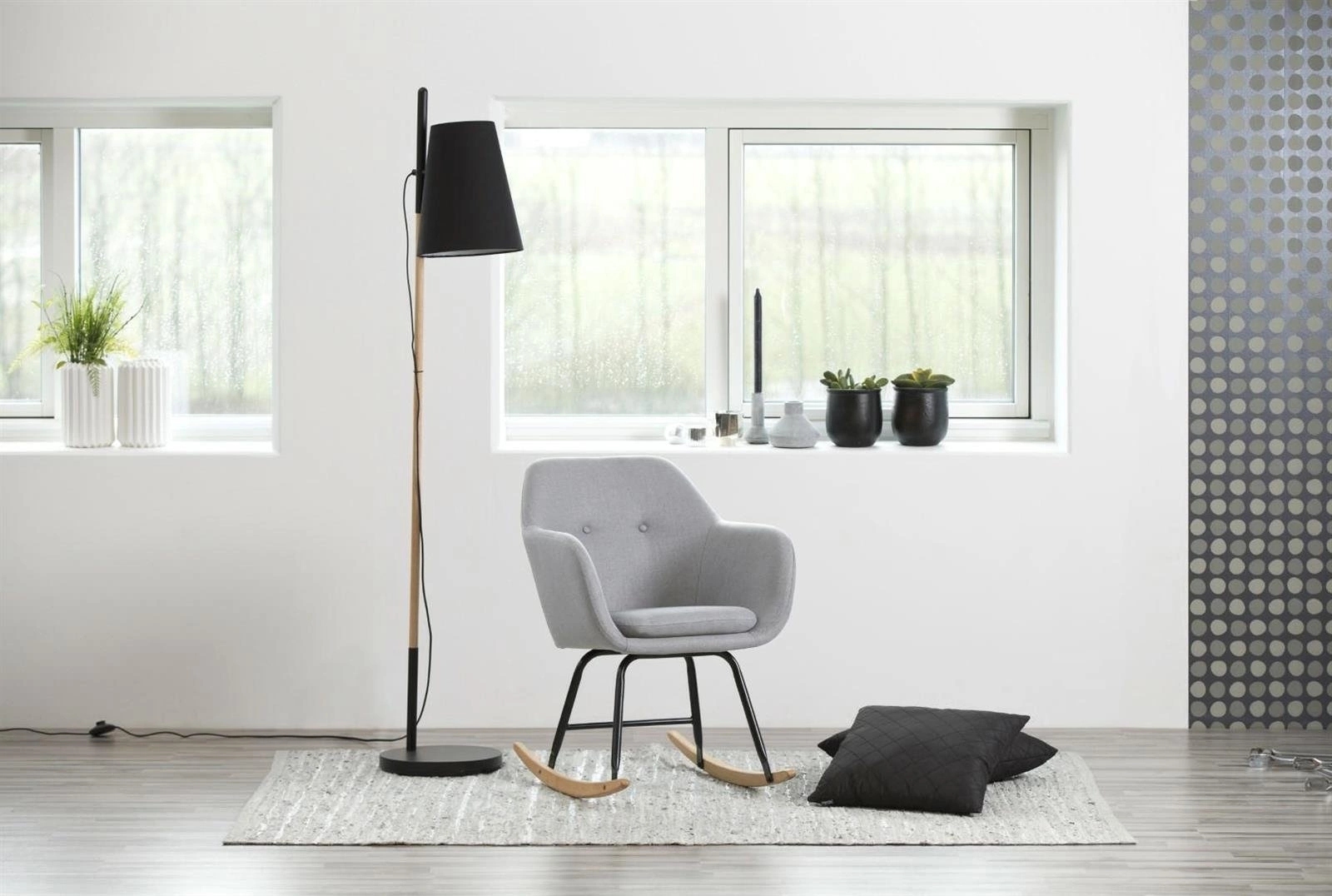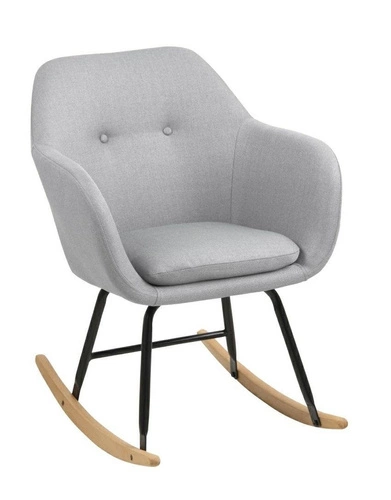 Krzesło bujane Emlilia to wpisujący się w najnowsze trendy designerski mebel, który zachwyci nawet najbardziej wybrednego konesera designu. Opływowy, mięki kształt siedziska dopełniony niezwykle wygodną poduszką daje niesamowity komfort, który pozwala na chwilę relaksu. Podstawa to połączenie drewna dębowego, pokrytego dodatkowo zabezpieczającą warstwą lakieru z metalem. Krzesło dostępne w różnych tkaninach oraz kolorach.