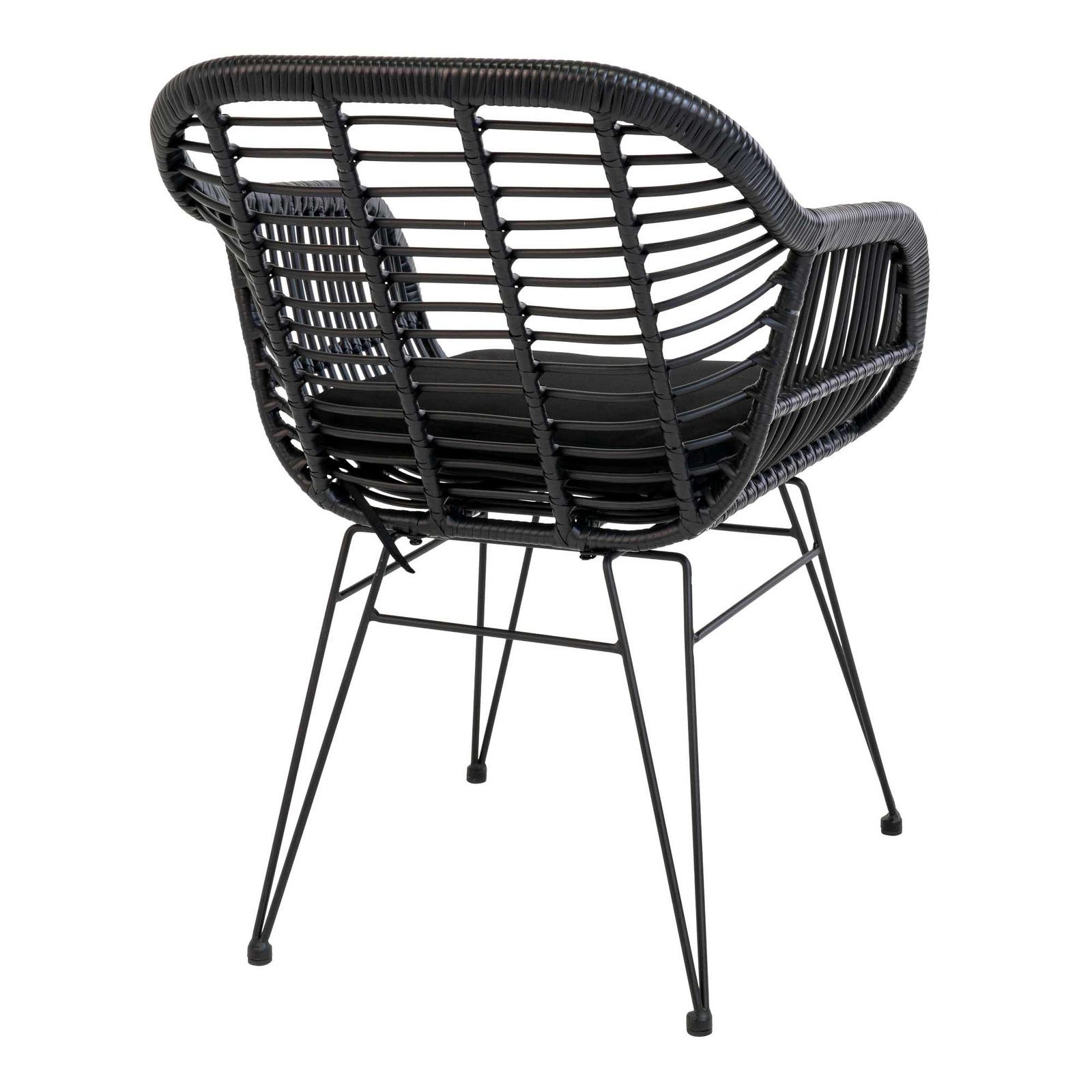 Krzesło ogrodowe Trieste marki Intesi to połączenie nowoczesnej estetyki, wygody i praktyczności. Wykonane z trwałego polirattanu i stabilnej, stalowej konstrukcji, zapewnia komfort dzięki podłokietnikom, a jego czarny kolor i półmatowe wykończenie efektownie podkreślają nowoczesny styl. Szerokość 57 cm i głębokość 60 cm pozwalają na wygodny relaks zarówno na tarasie, jak i w jadalni czy salonie.