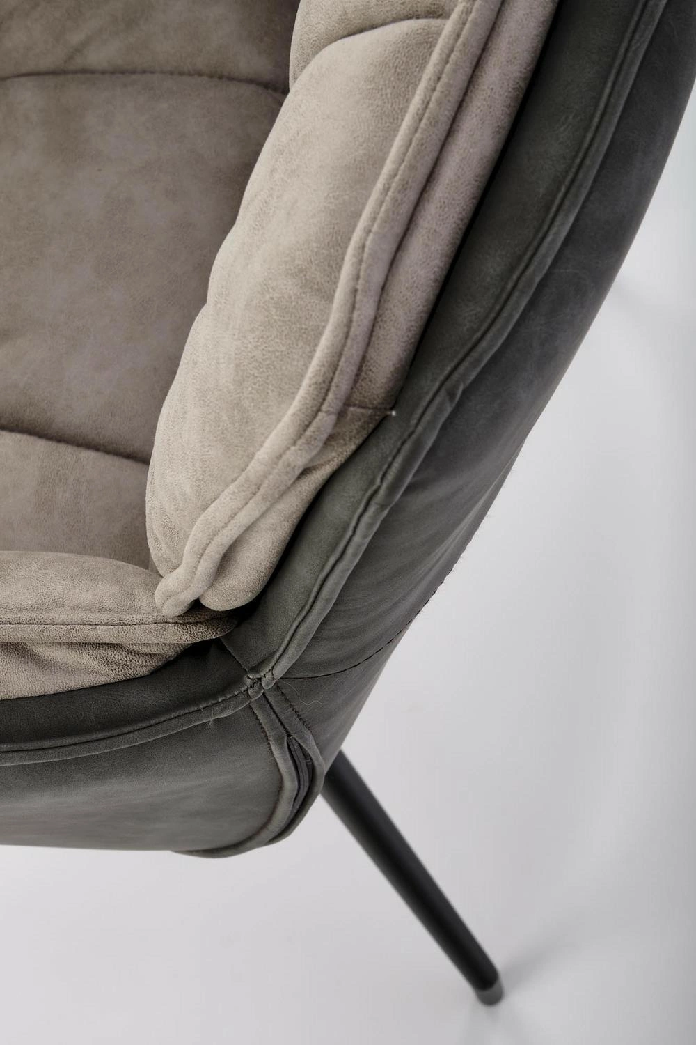 Doskonała jakość: Wykonanie krzesła z najwyższej jakości materiałów, takich jak tkanina, skóra ekologiczna i stal malowana proszkowo, gwarantuje jego trwałość i wytrzymałość.