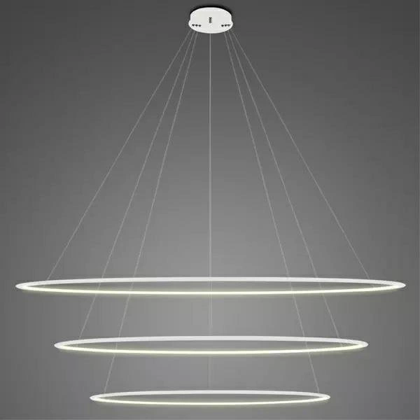 Lampa sufitowa Ledowe Okręgi 230 cm to propozycja stworzona z myślą o przestronnych wnętrzach, gdzie światło odgrywa kluczową rolę w budowaniu atmosfery. Trzy efektowne okręgi o różnych średnicach tworzą fascynującą, przestrzenną kompozycję, która przykuwa wzrok i wprowadza do aranżacji niepowtarzalny styl. Dzięki swojej imponującej szerokości i długości zawieszenia, model doskonale sprawdzi się jako lampa nad stół w jadalni, żyrandol do salonu z wysokim sufitem czy lampa nad wyspę kuchenną w nowoczesnych loftach.