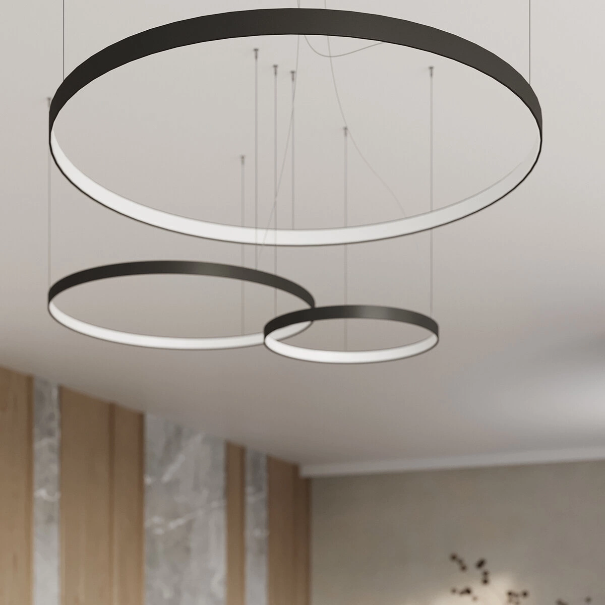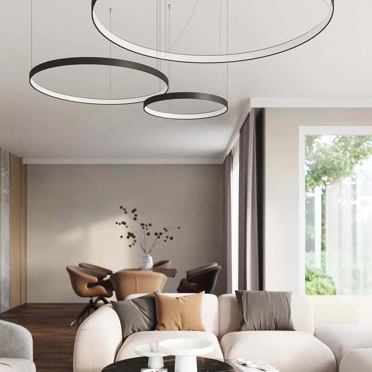 Żyrandol Rio to przede wszystkim funkcjonalność. Okrągła lampa to gwarant wydajnego i równomiernego rozprowadzenia światła po przestrzeni, a dołączona w zestawie żarówka LED wystarczy na cały czas użytkowania lampy. Do wyboru otrzymujesz trzy rozmiary lampy: 55, 78 i 110 cm w średnicy. Dostępne są również różne kolory światła żarówki. W zależności od potrzebnej barwy, w zestawie dołączona może być żarówka o ciepłym (3000K) lub zimnym (4000K) odcieniu bieli. Ten nowoczesny i elegancki żyrandol pasował będzie zarówno do salonu, jak też do jadalni czy przedpokoju. Świetnie sprawdzi się również w hotelu, restauracji czy sklepie.