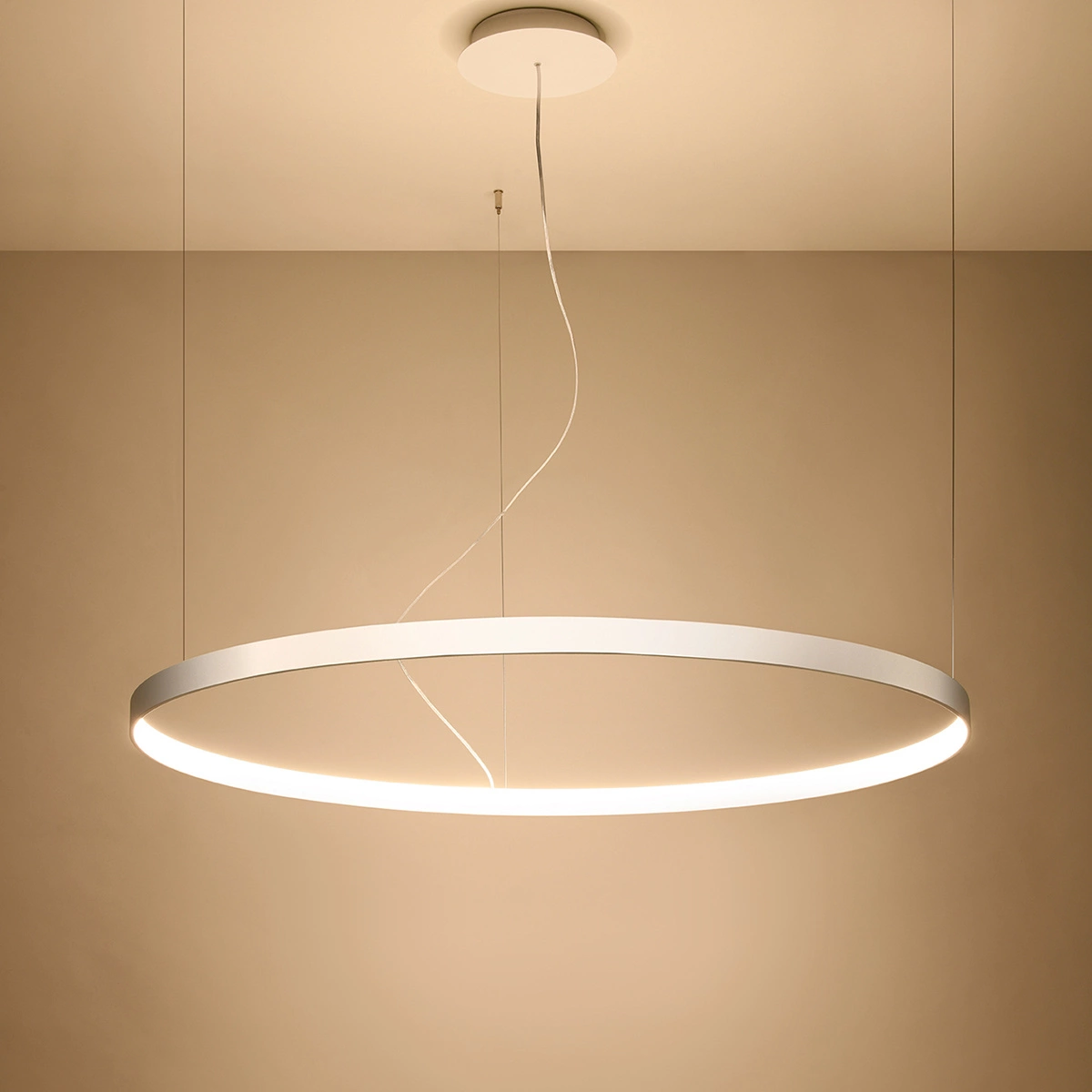 Żyrandol Rio to przede wszystkim funkcjonalność. Okrągła lampa to gwarant wydajnego i równomiernego rozprowadzenia światła po przestrzeni, a dołączona w zestawie żarówka LED wystarczy na cały czas użytkowania lampy. Do wyboru otrzymujesz trzy rozmiary lampy: 55, 78 i 110 cm w średnicy. Dostępne są również różne kolory światła żarówki. W zależności od potrzebnej barwy, w zestawie dołączona może być żarówka o ciepłym (3000K) lub zimnym (4000K) odcieniu bieli. Ten nowoczesny i elegancki żyrandol pasował będzie zarówno do salonu, jak też do jadalni czy przedpokoju. Świetnie sprawdzi się również w hotelu, restauracji czy sklepie.