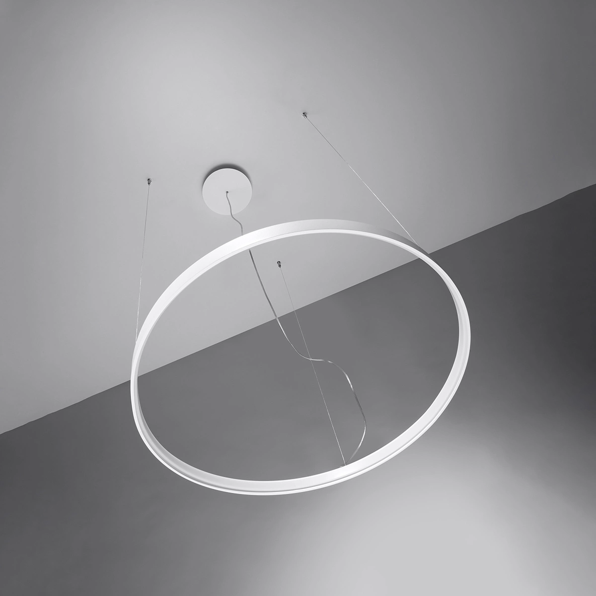 Żyrandol Rio to przede wszystkim funkcjonalność. Okrągła lampa to gwarant wydajnego i równomiernego rozprowadzenia światła po przestrzeni, a dołączona w zestawie żarówka LED wystarczy na cały czas użytkowania lampy. Do wyboru otrzymujesz trzy rozmiary lampy: 55, 78 i 110 cm w średnicy. Dostępne są również różne kolory światła żarówki. W zależności od potrzebnej barwy, w zestawie dołączona może być żarówka o ciepłym (3000K) lub zimnym (4000K) odcieniu bieli. Ten nowoczesny i elegancki żyrandol pasował będzie zarówno do salonu, jak też do jadalni czy przedpokoju. Świetnie sprawdzi się również w hotelu, restauracji czy sklepie.