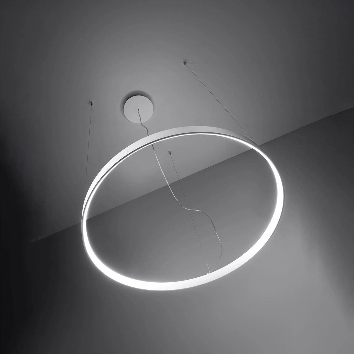 Żyrandol Rio to przede wszystkim funkcjonalność. Okrągła lampa to gwarant wydajnego i równomiernego rozprowadzenia światła po przestrzeni, a dołączona w zestawie żarówka LED wystarczy na cały czas użytkowania lampy. Do wyboru otrzymujesz trzy rozmiary lampy: 55, 78 i 110 cm w średnicy. Dostępne są również różne kolory światła żarówki. W zależności od potrzebnej barwy, w zestawie dołączona może być żarówka o ciepłym (3000K) lub zimnym (4000K) odcieniu bieli. Ten nowoczesny i elegancki żyrandol pasował będzie zarówno do salonu, jak też do jadalni czy przedpokoju. Świetnie sprawdzi się również w hotelu, restauracji czy sklepie.